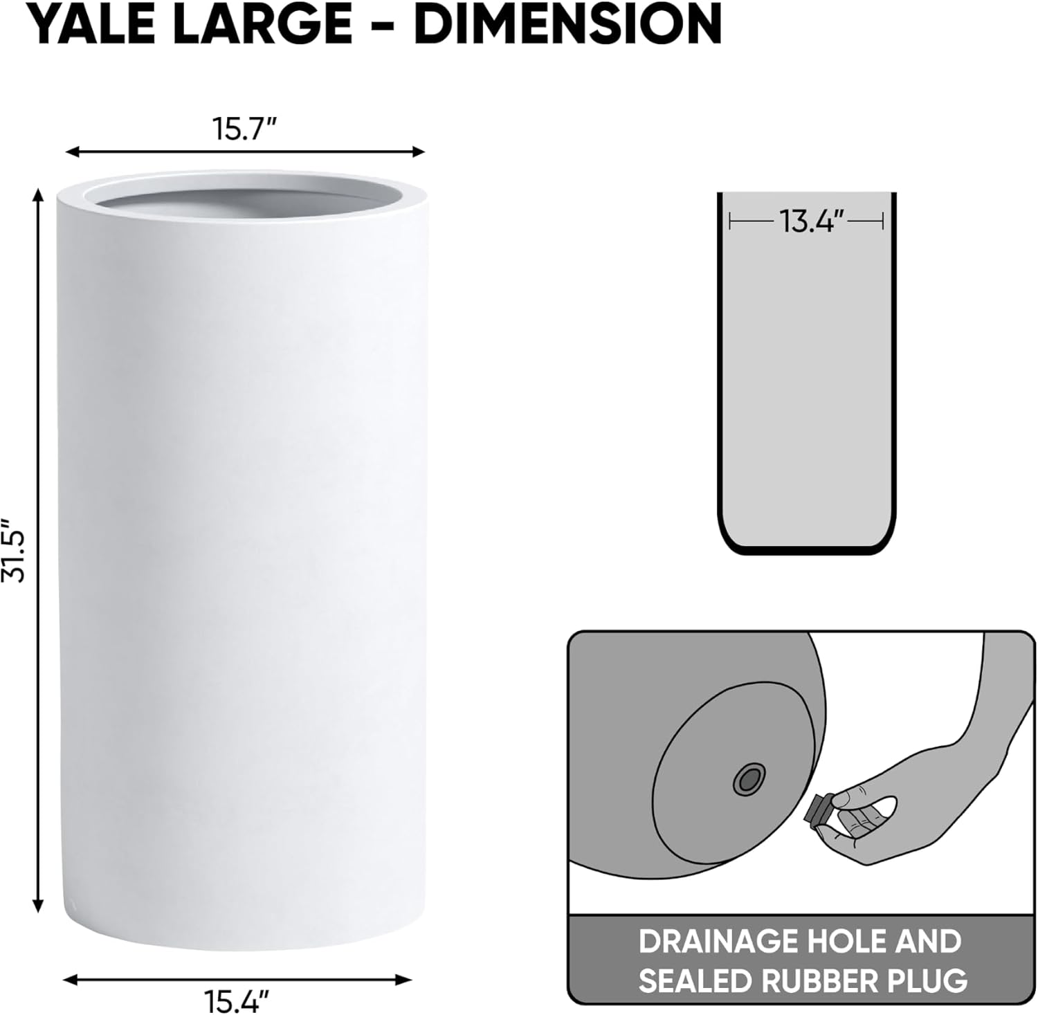 DTY Signature Mount Oxford Tall Outdoor Planter - Large White 31.5 Inch Height Modern Tall Planter Pot for Indoor & Outdoor Spaces - Stylish Planter for Contemporary Homes and Gardens