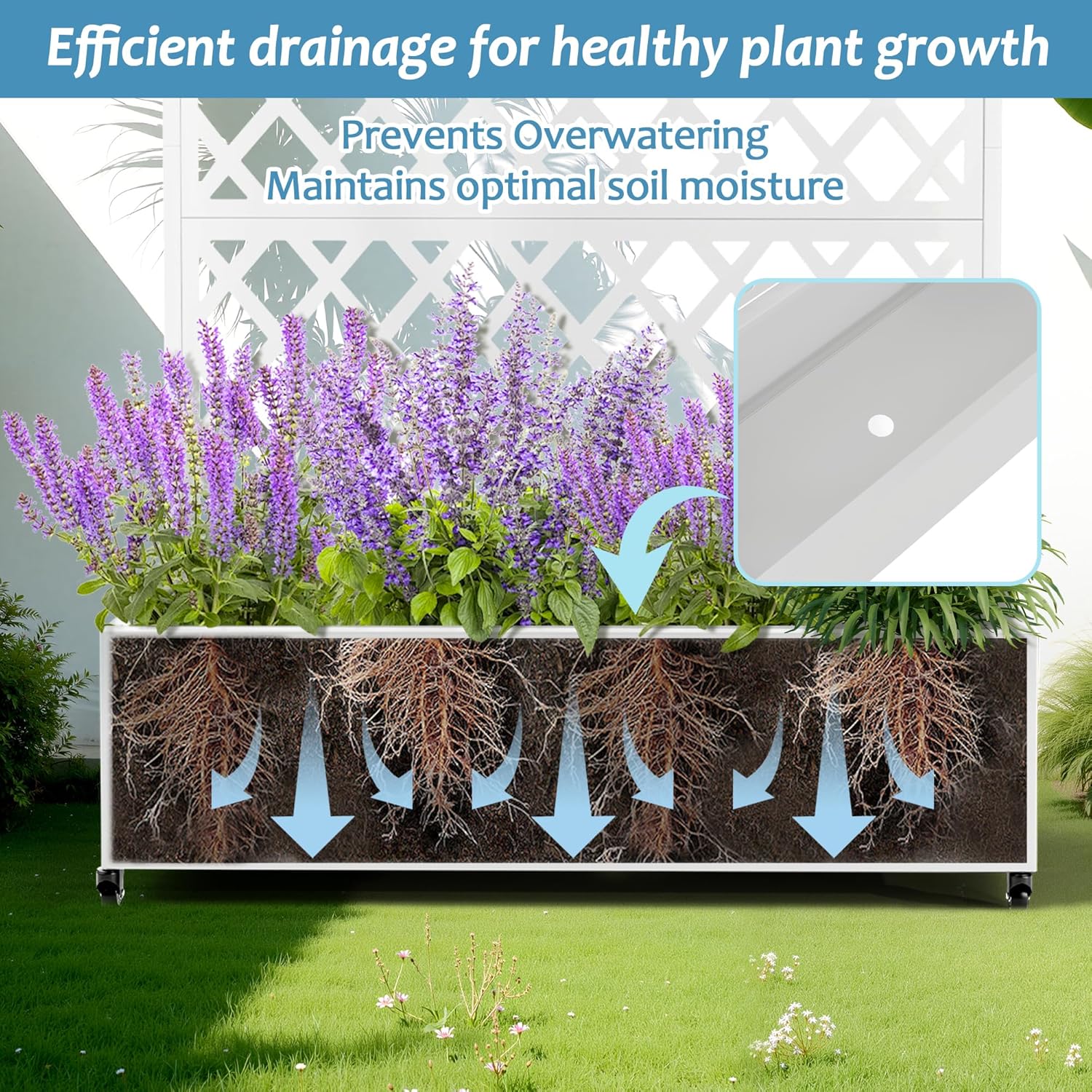 - Enhanced Drainage & Root Support: Designed with a deep planting bed, this raised planter allows roots to grow freely while promoting healthy plant development. Integrated drainage holes help regulate moisture levels by preventing overwatering and water buildup, creating an ideal environment for thriving vegetation