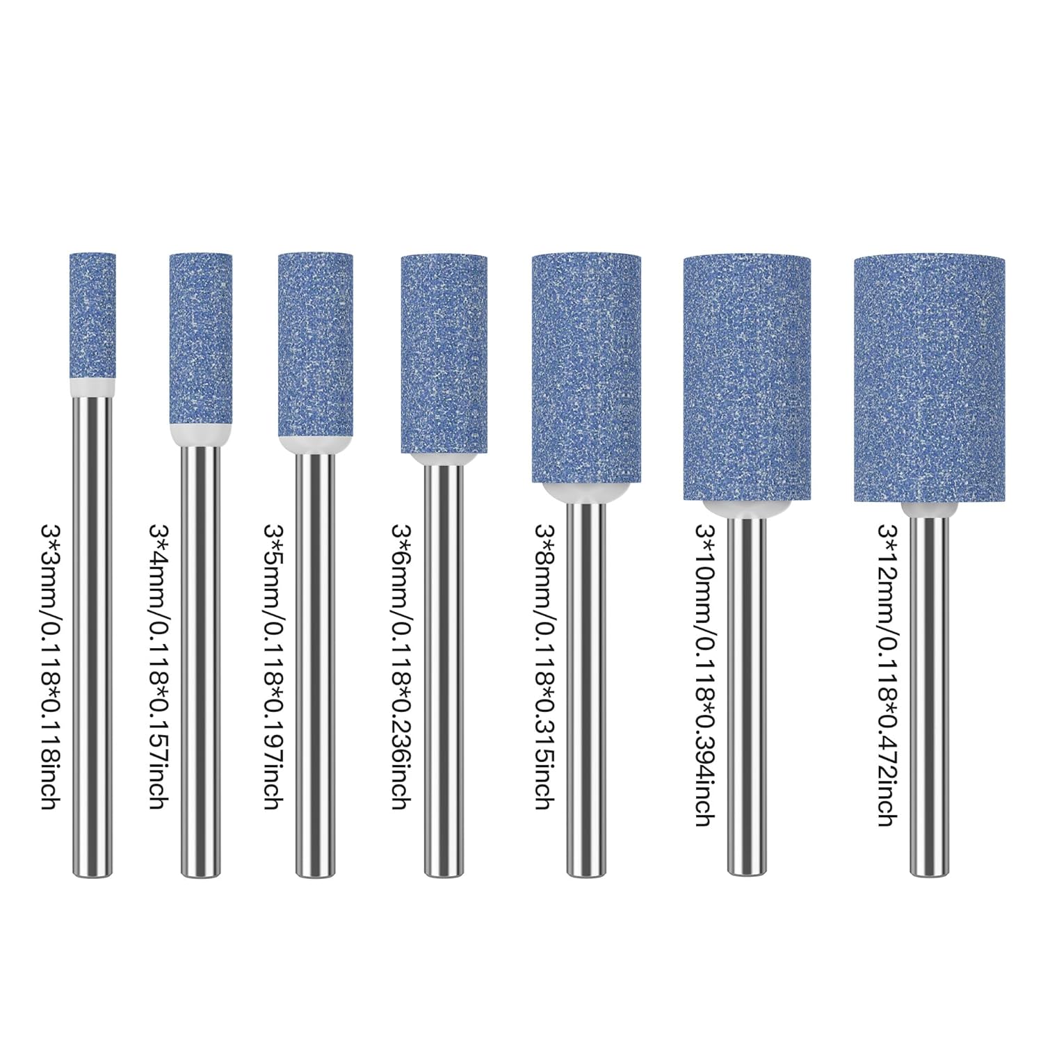 HUHAO 7Pcs Rotary Grinding Stone- 3mm Shank Assorted Shape Abrasive Stone Mounted Grinding Point Sharpening Bits for Rotary Tool Drill, Grinding, Polishing