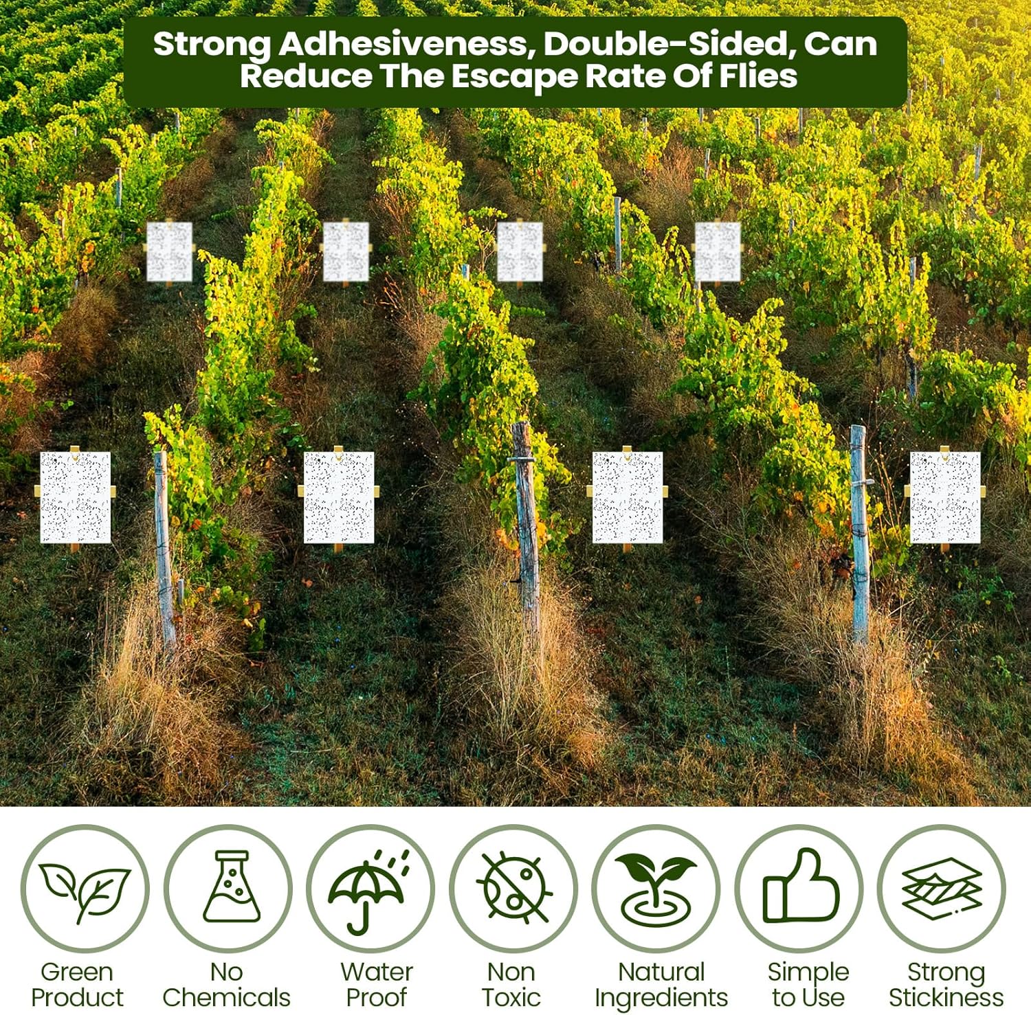 - Double Sided Stickiness: our white sticky traps are designed to be double sided, widely catch the most pests, includes white flies, leaf miners, fungus gnats, shore flies, midges, mosquitoes, and other flying insects, you can place them in the garden, lawn, yard, next to the trash can and so on