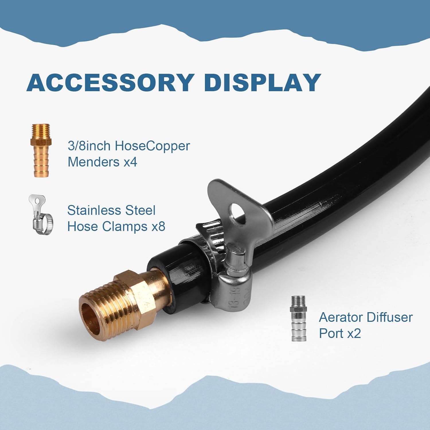 3/8 Inch Self Sinking Aeration Hose, 100 Feet Weighted Pond Aerator Hose Kit 8 Stainless Steel Hose Clamps and 4 Menders for Pond and Lake Aeration