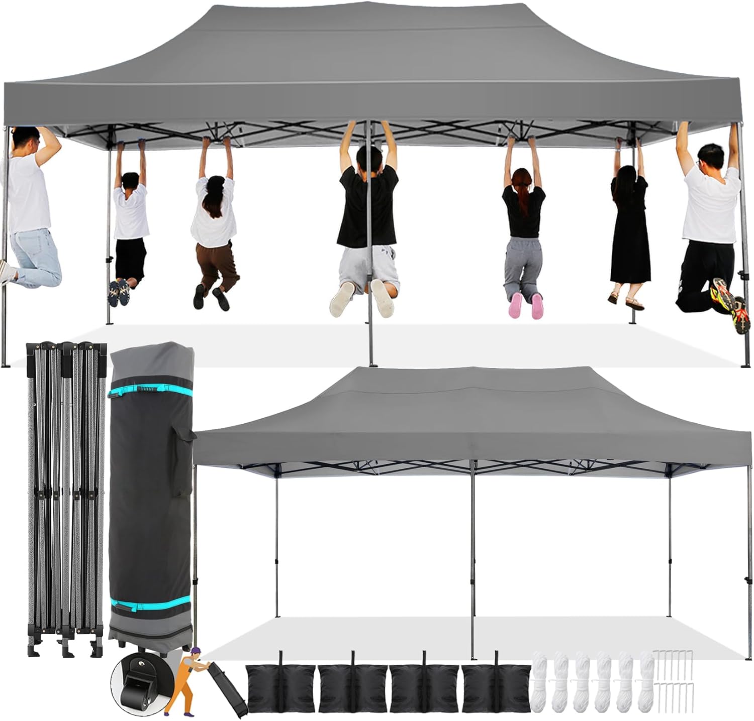 COBIZI 10x20 Pop Up Canopy Without Sidewall,Heavy Duty Canopy UPF 50+ All Season Wind Waterproof Commercial Outdoor Wedding Party Tents for Parties Gazebo with Roller Bag(10 x 20 ft Gray)