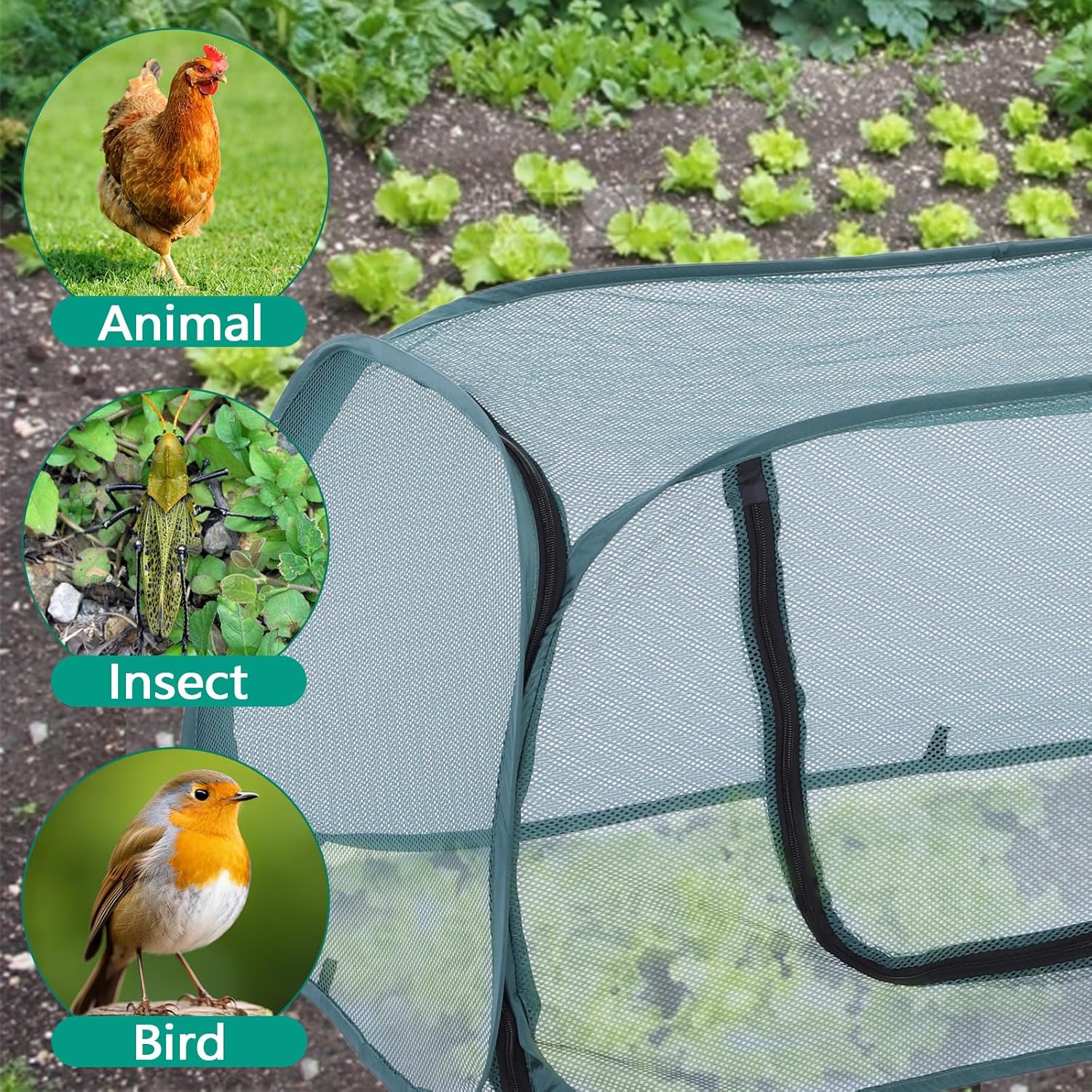 - 【YEAR-ROUND, MULTI-LOCATION DEFENSE】: Ideal for raised beds, in-ground rows, patios or market-garden plots. The cover acts as a mini greenhouse for cool spring and autumn nights, while the mesh barrier blocks birds, insects, rabbits and curious pets—delivering consistent, chemical-free protection for every stage of plant growth