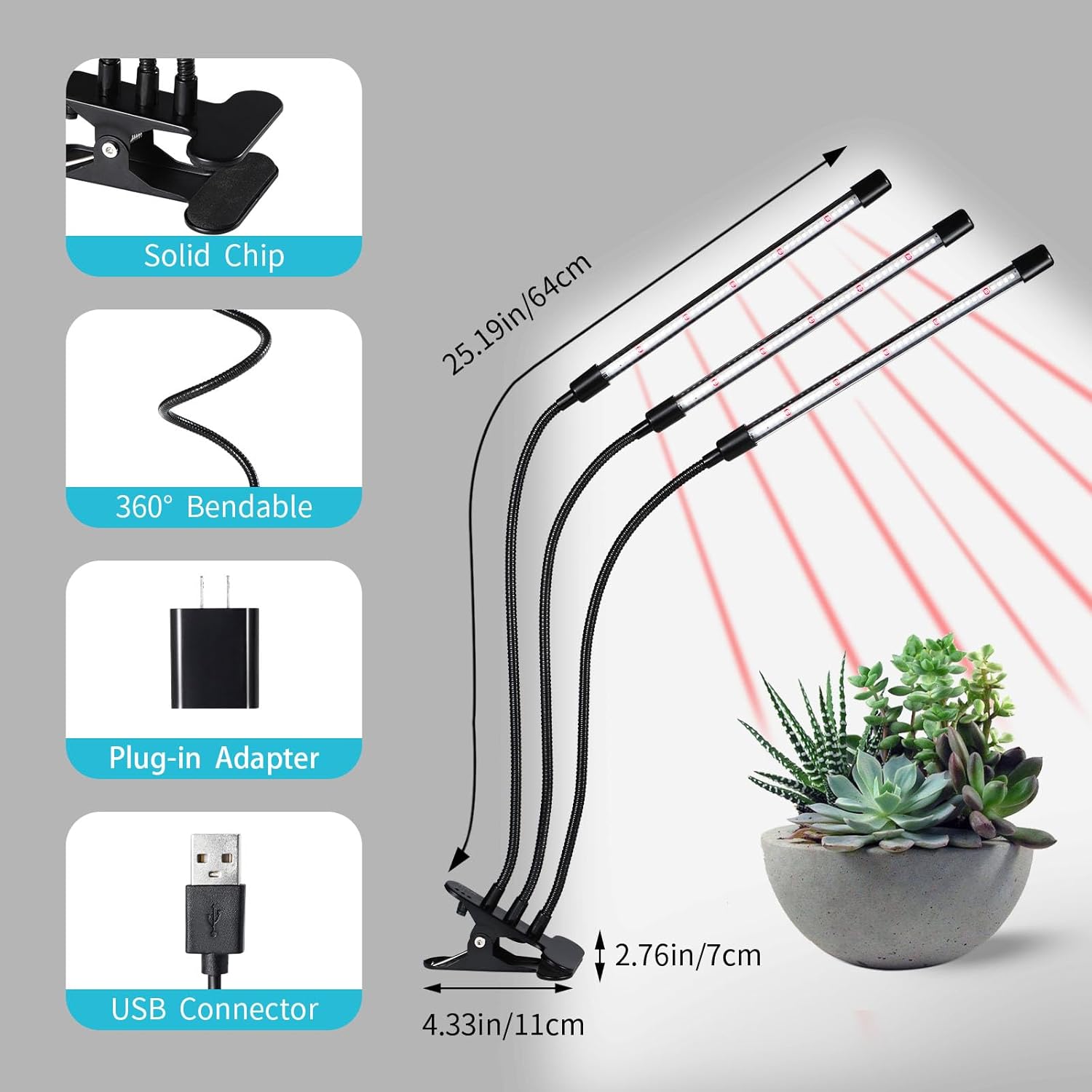 - 【Flexible Led Gooseneck & Strong Clips】Our LED grow lights come with sturdy clamps that provide sturdy and stable base support .The 360-degree adjustable gooseneck with three heads gives more light to the plants than the traditional one or two heads, allowing you more freedom to distribute the light.