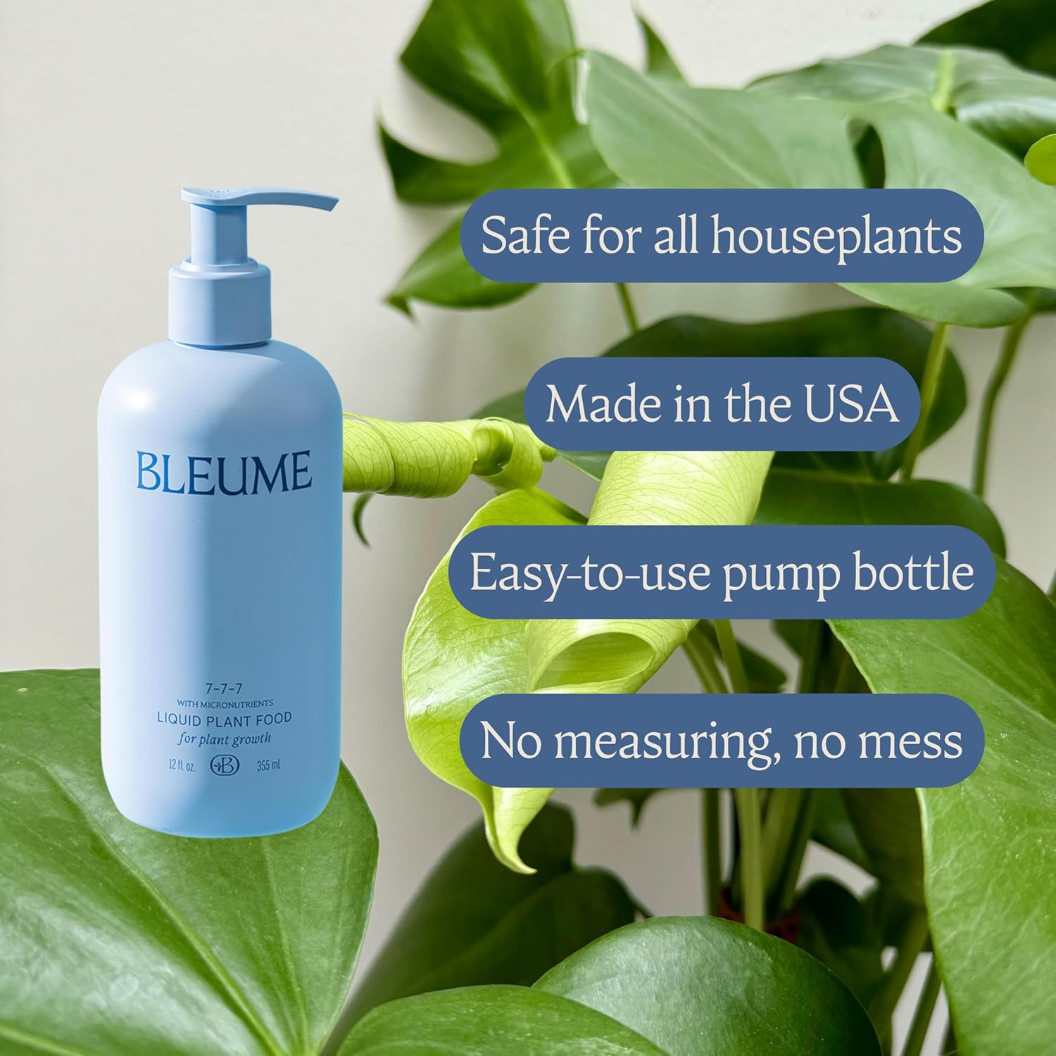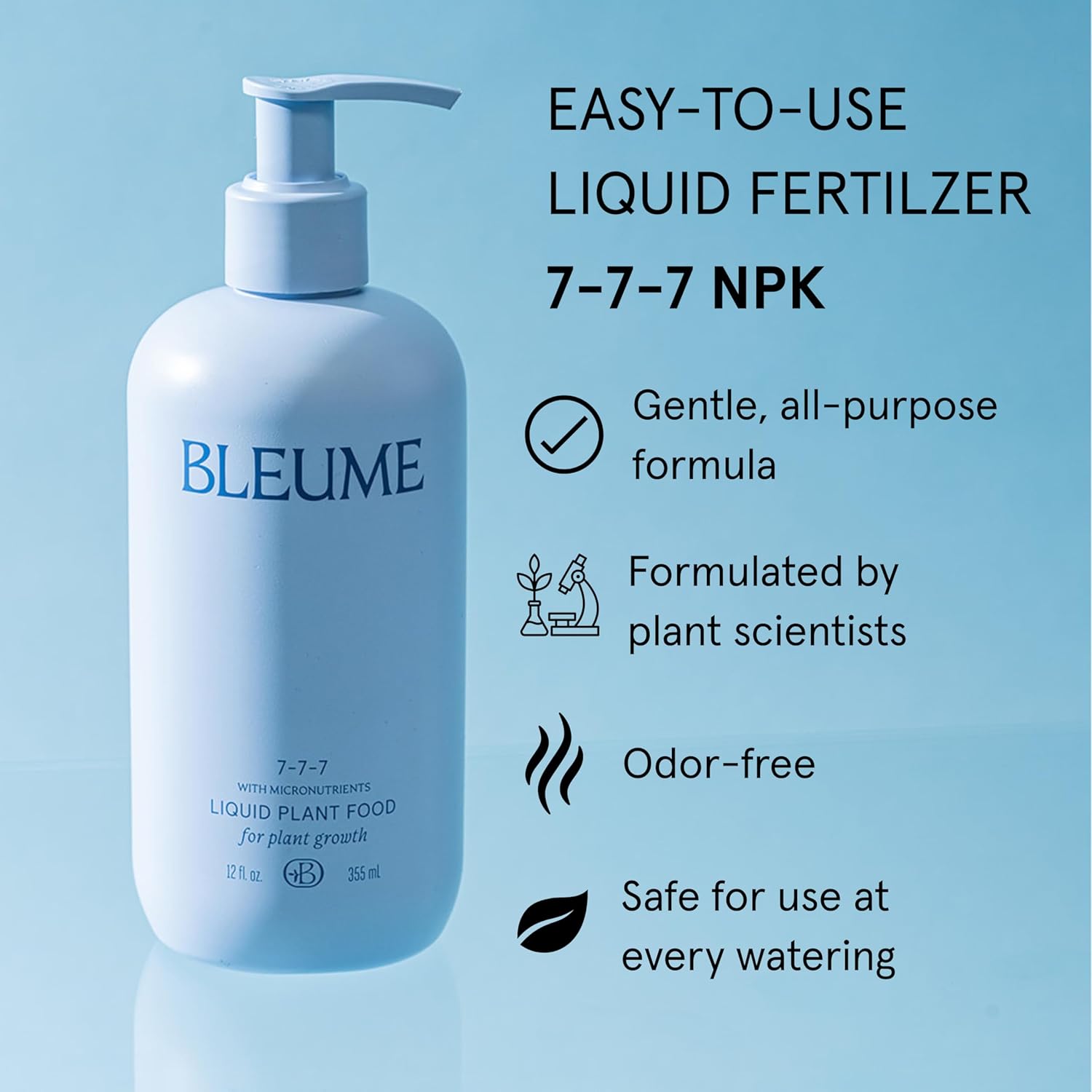 Liquid Plant Food, All-Purpose Houseplant Fertilizer, NPK 7-7-7, with Micronutrients, 4 Pumps per Liter, 12 fl oz, Made in The USA
