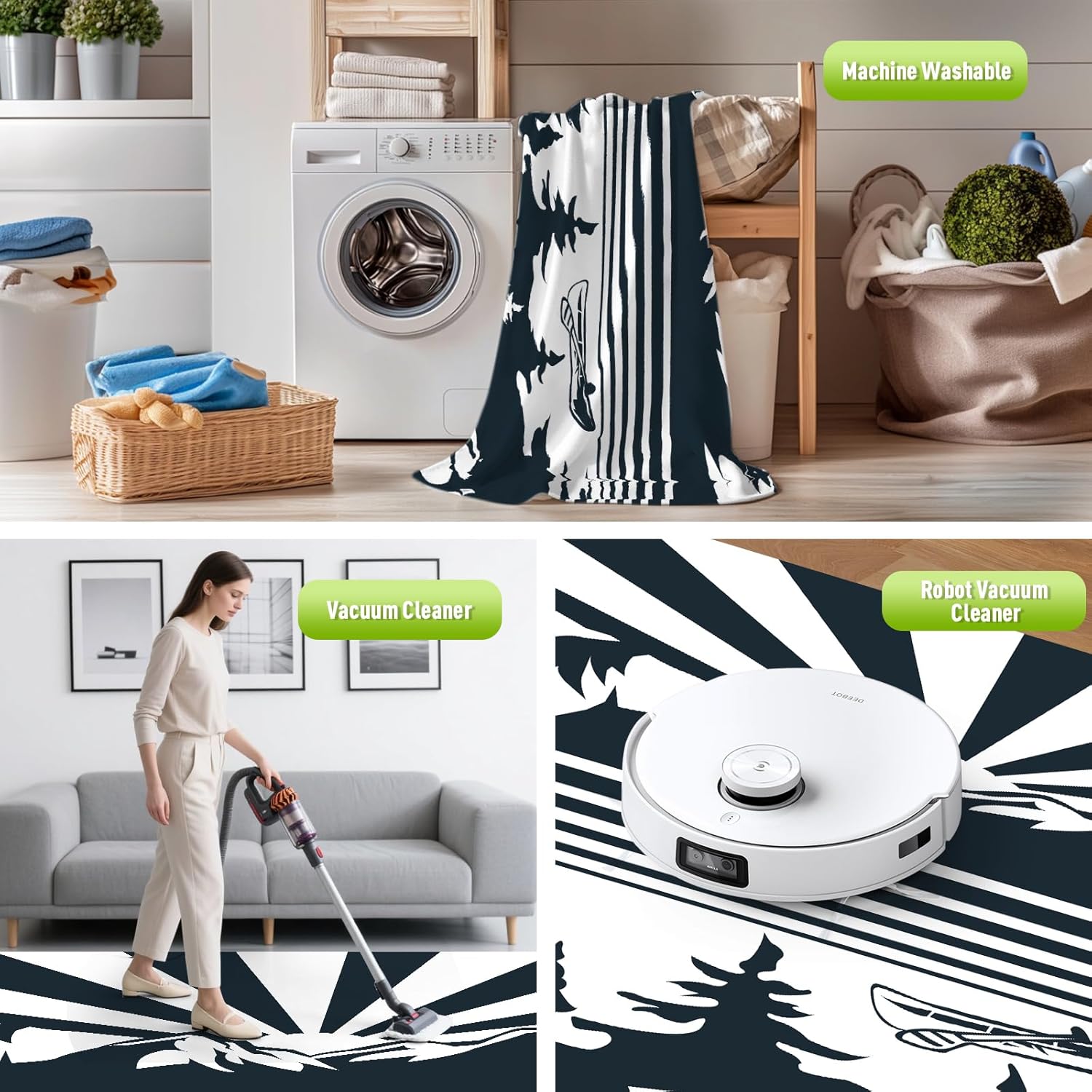 - Stain-Resistant & Easy to Clean: This waterproof, stain-resistant, and quick-drying outdoor rug is made from recycled plastic grass weaving. Dirt, hair, and spills can be easily removed by hosing it down or shaking it off. For deep cleaning, simply wipe it with a damp cloth and mild soapy water, rinse, and let it air dry in minutes