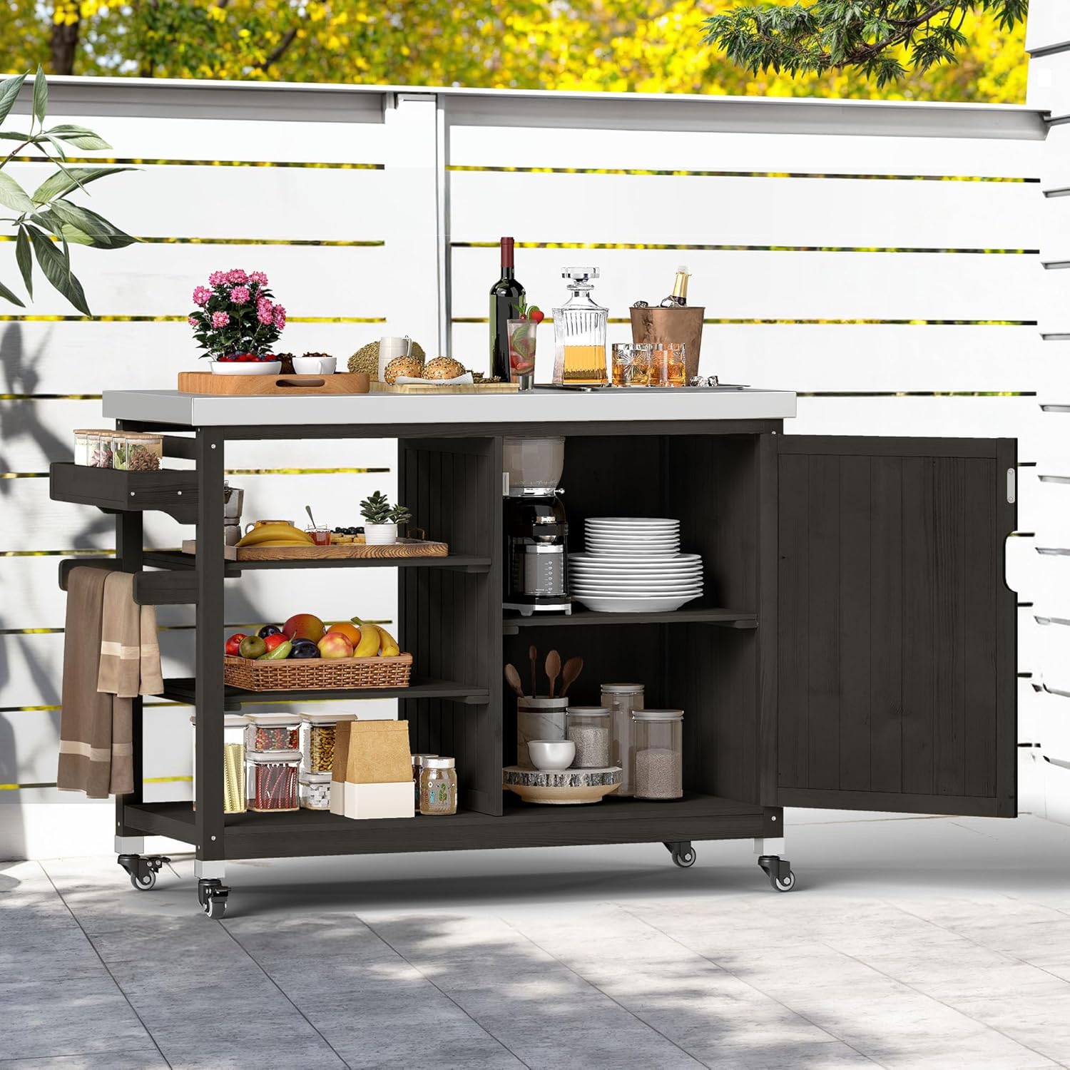 - Multifunctional Design: Multipurpose hosting solution that allows you to hold your food and drinks or perform other duties for your party or BBQ. You can use it as a BBQ grill cart, an outdoor bar, a serving cart, a prep table, or a kitchen island