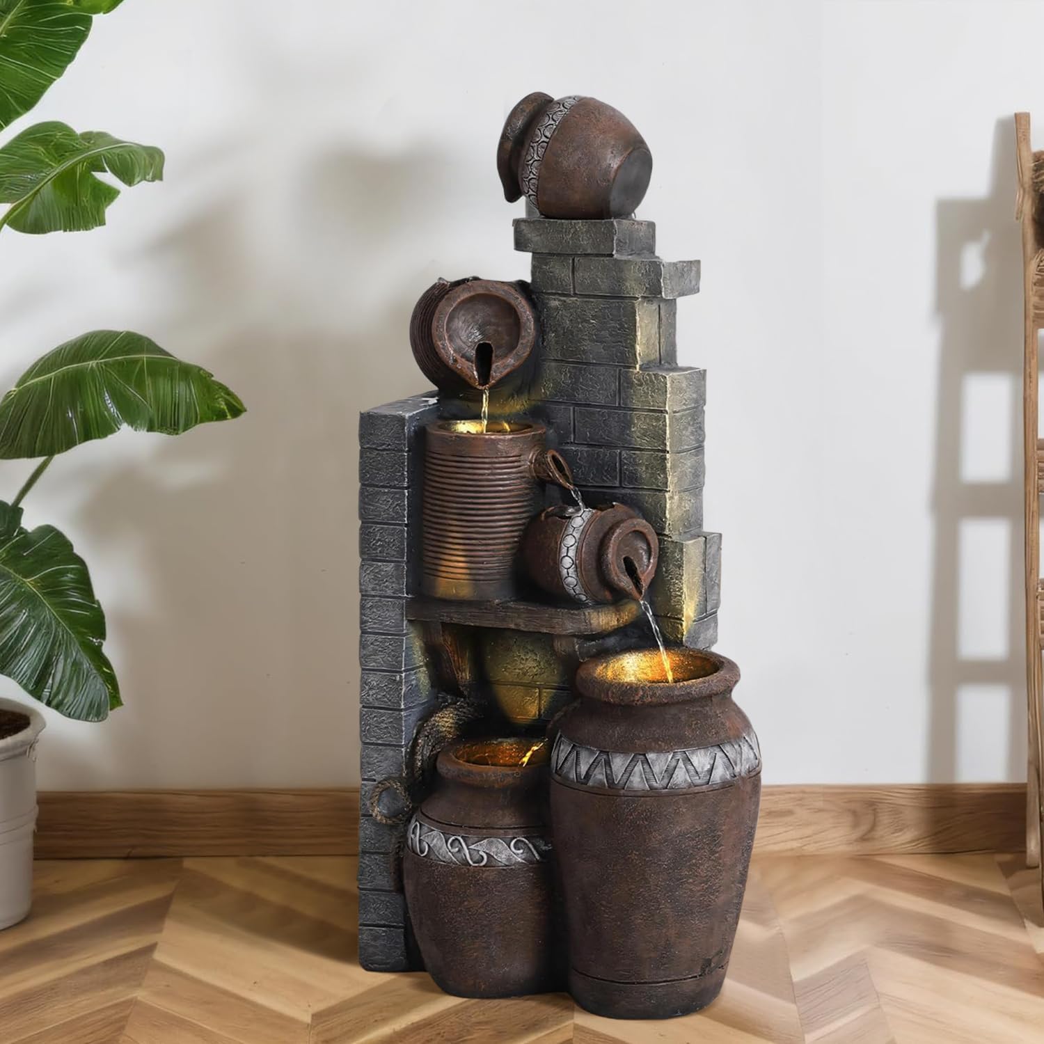 - Warm LED Lights: The interior of the fountain is equipped with bright warm LED lights, the soft light highlights the flowing water that is both soothing and captivating. The interaction of light and water evokes a sense of enchantment at night