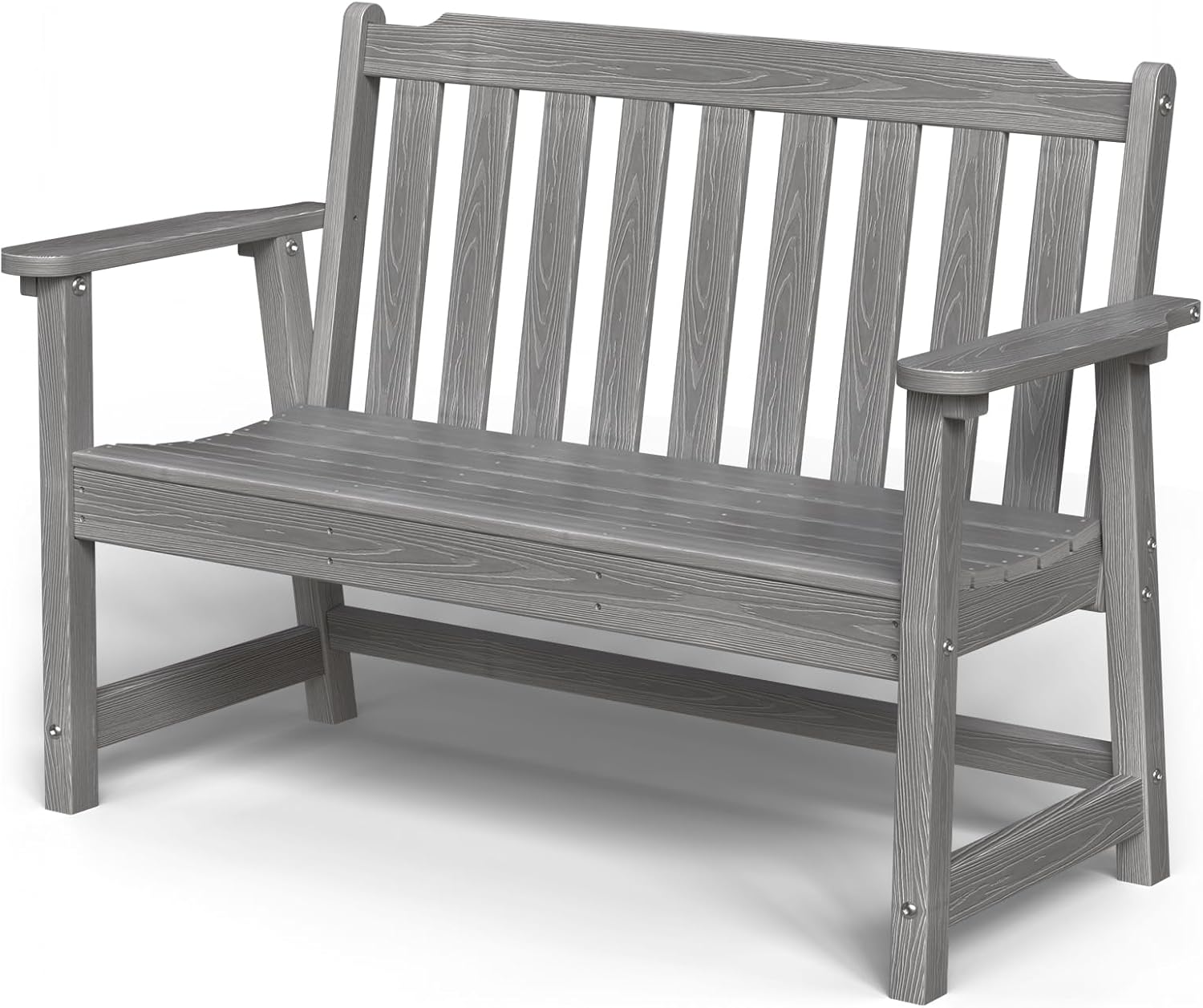 Outdoor Bench, 2-Person HDPE Garden Bench, All Weather Poly Patio Bench for Outdoors, Garden, Backyard, Porch and Park, 660 lbs Weight Capacity, Grey