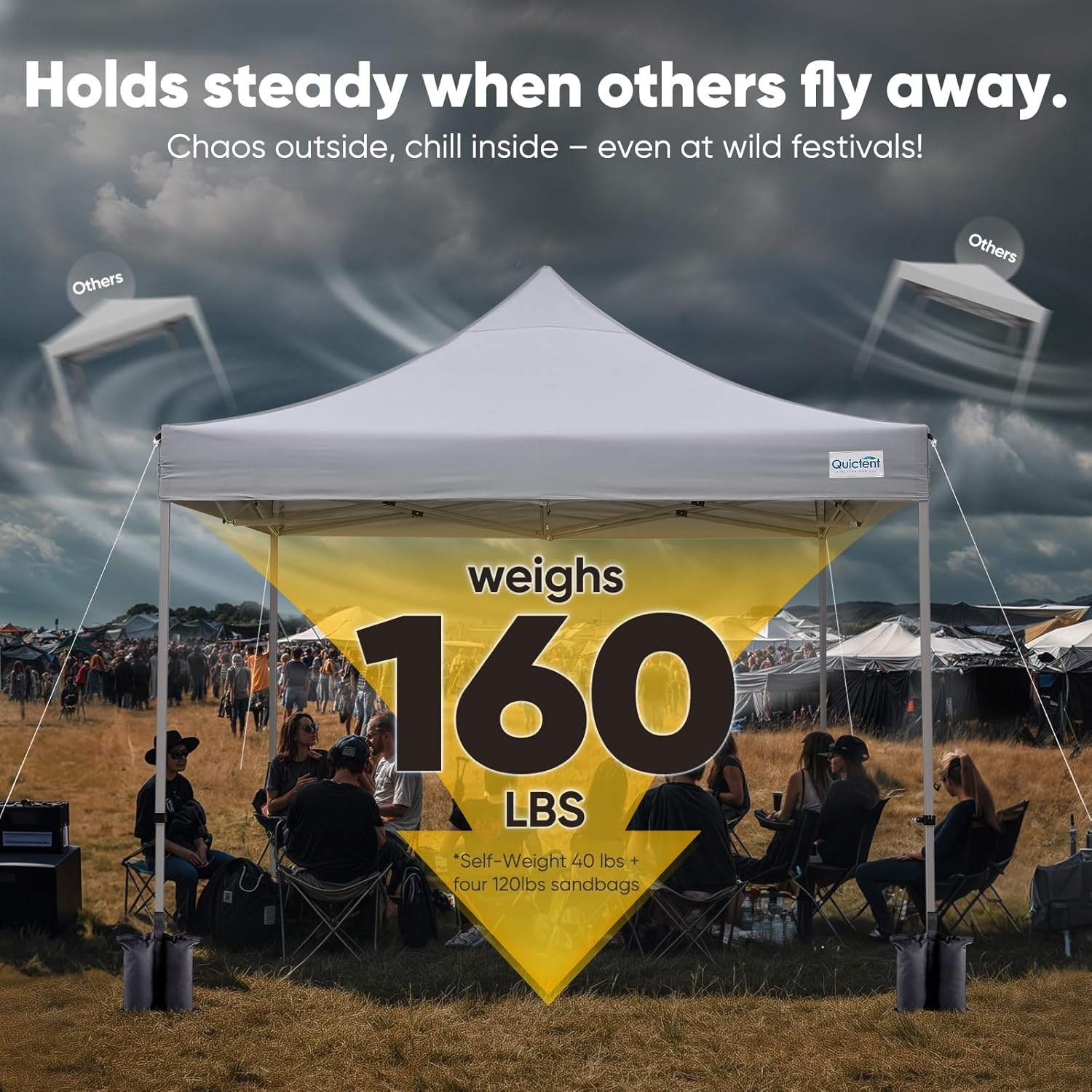 Quictent 10x10 Heavy Duty Pop Up Canopy Tent- Easy up Outdoor Commercial Canopies, Waterproof, 11ft Interior Height, Easy Setup, Includes Sand Weight Bags and Wheeled Carry Bag