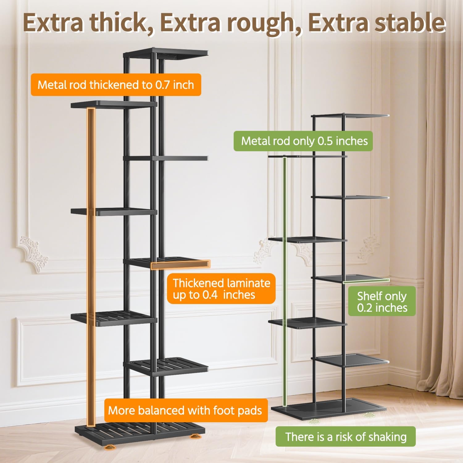 - 【Solid Feel You Can Trust】Worried about unstable stands tipping over? Crafted from upgraded metal that's 30% stronger than typical stands, the plant rack holds even heavy 9-inch pots with ease—no wobble, no tipping. From the moment you unbox it, you’ll feel the difference.