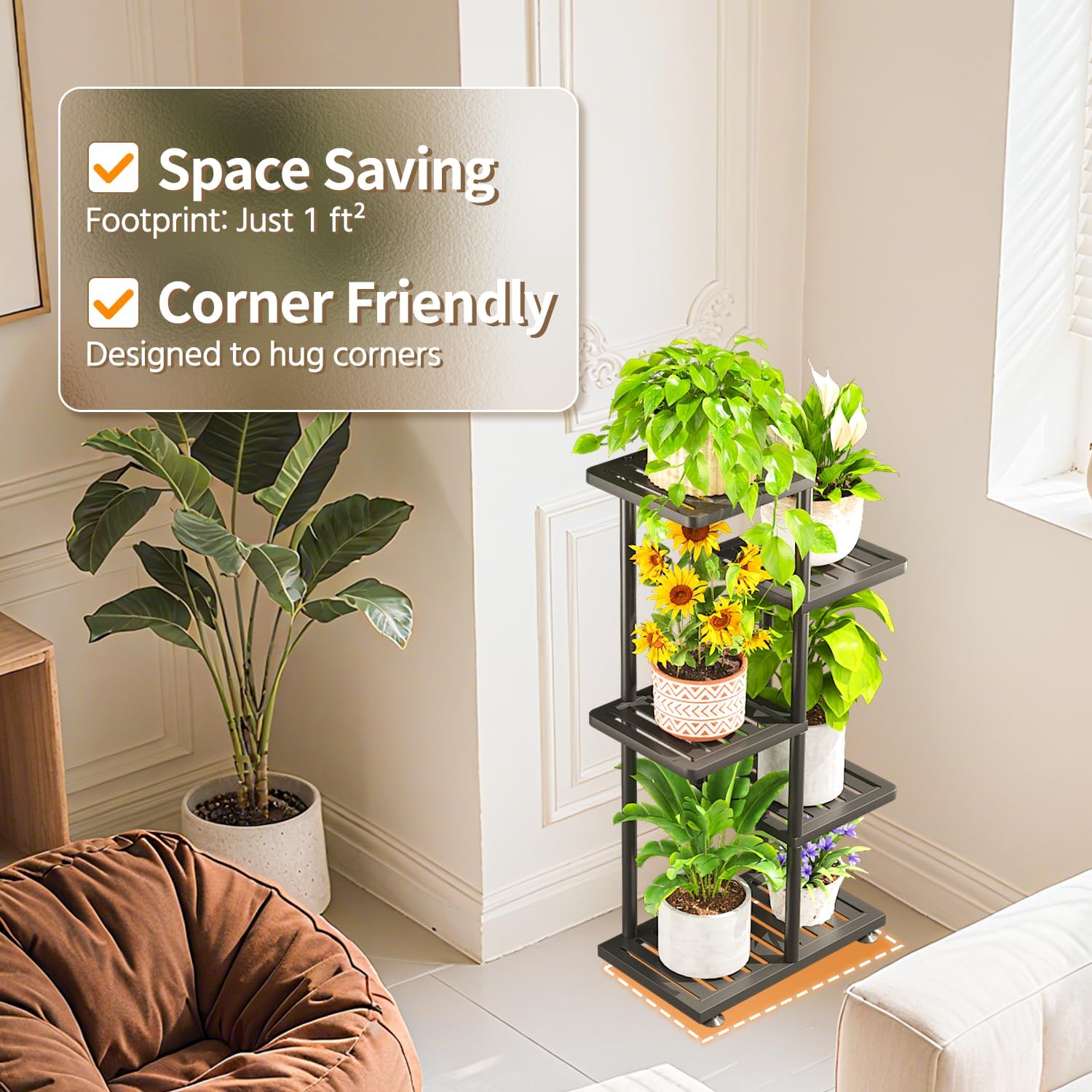 - 【Sunlight for Every Leaf】The open-tiered design gives each plant its own space to breathe and soak in sunlight—no more crowding or hidden leaves. With a square base that fits snugly into narrow corners, this stand turns overlooked spots into thriving plant zones filled with light and fresh air.