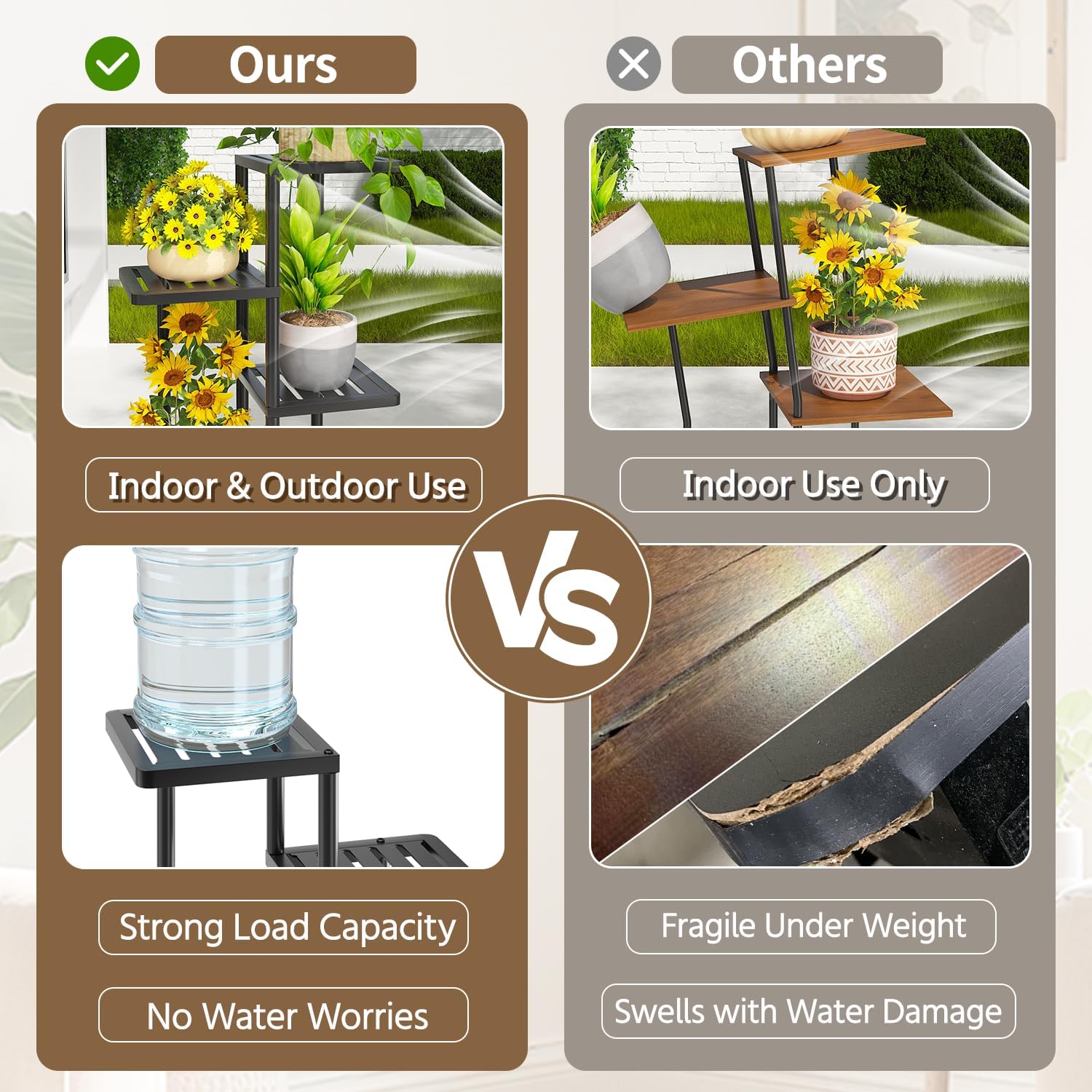 - 【Solid Feel You Can Trust】Worried about unstable stands tipping over? Crafted from upgraded metal that's 30% stronger than typical stands, our plant rack holds even heavy 9-inch large pots with ease—no wobble, no tipping. From the moment you unbox it, you’ll feel the difference.