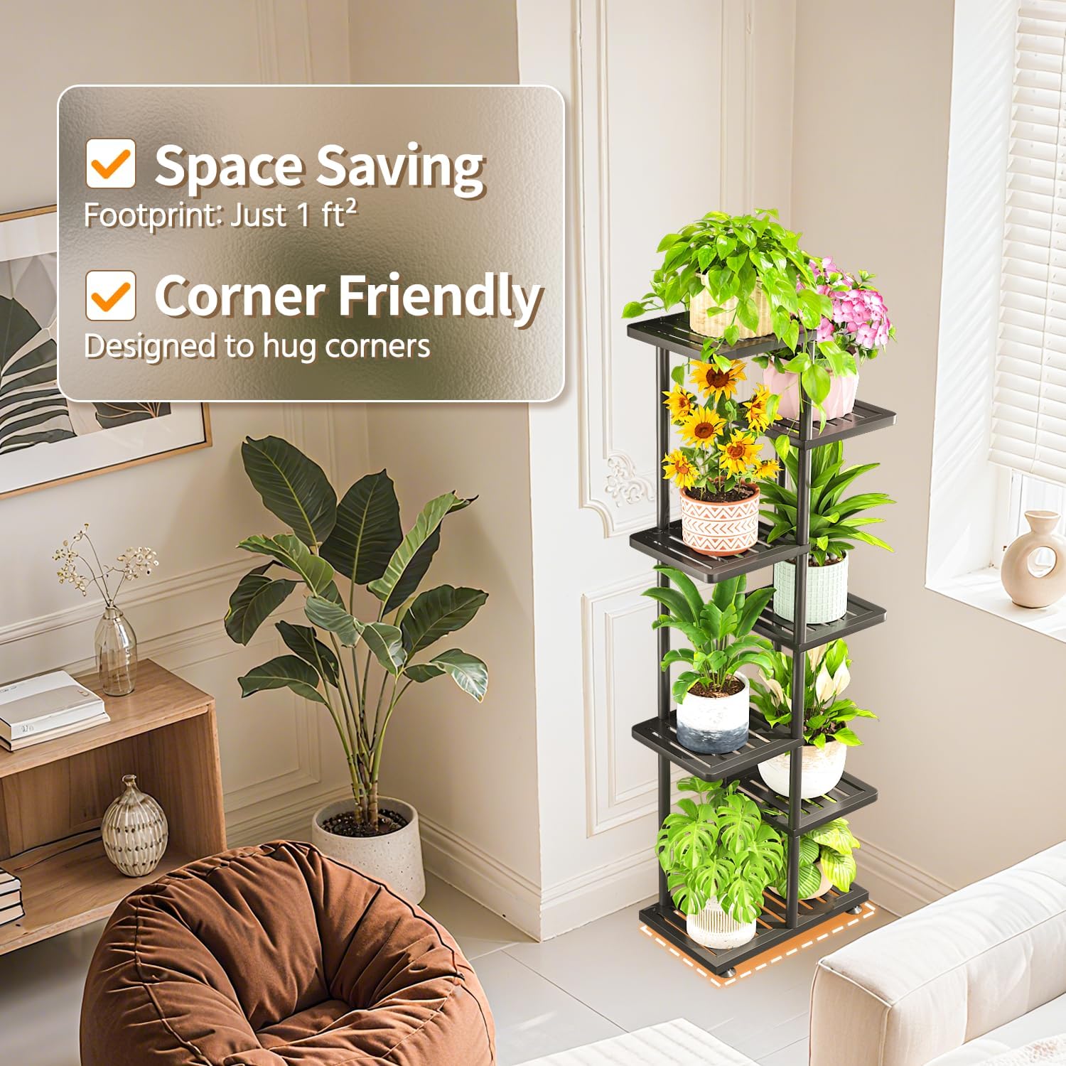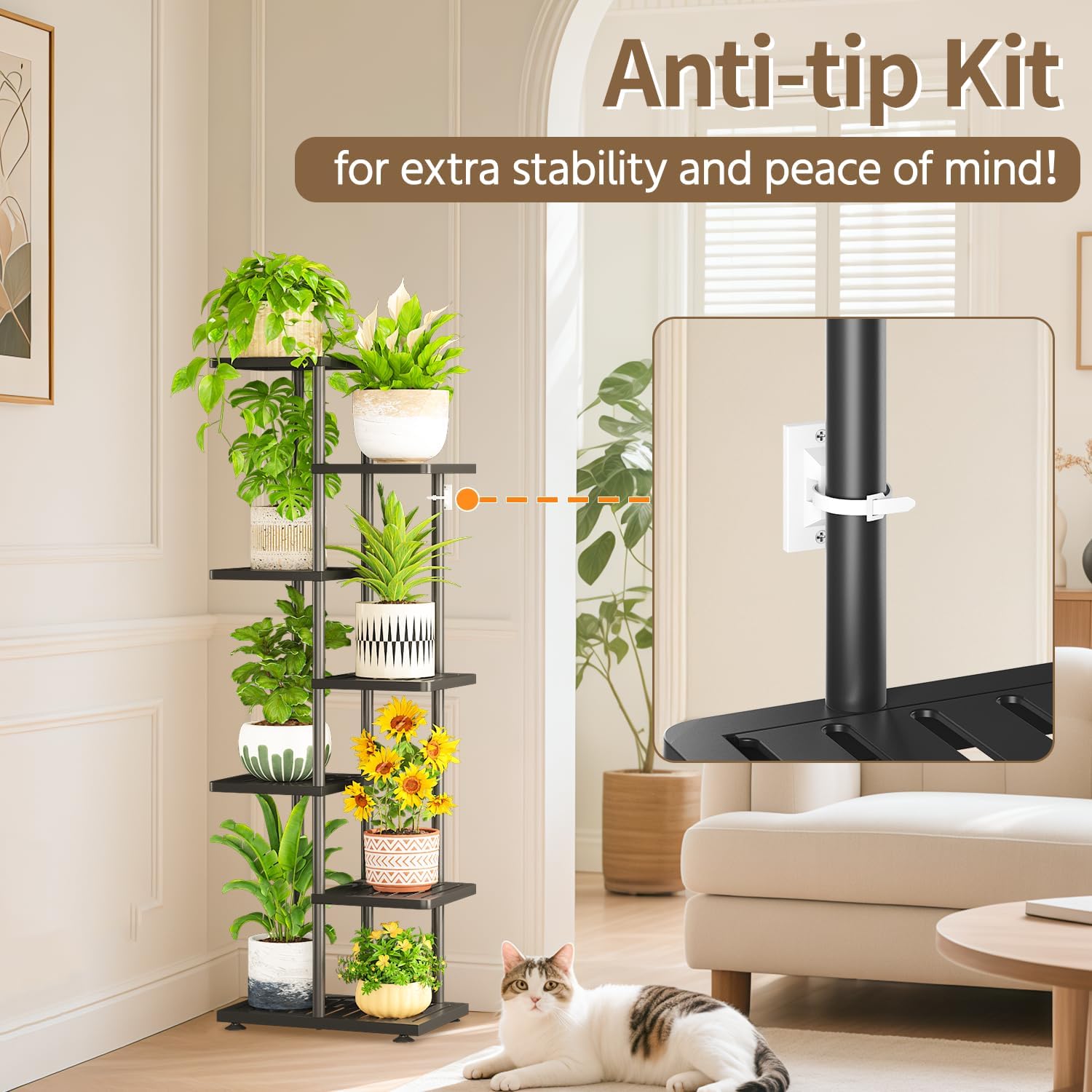 - 【Solid Feel You Can Trust】Worried about unstable stands tipping over? Crafted from upgraded metal that's 30% stronger than typical stands, the plant rack holds even heavy 9-inch pots with ease—no wobble, no tipping. From the moment you unbox it, you’ll feel the difference.