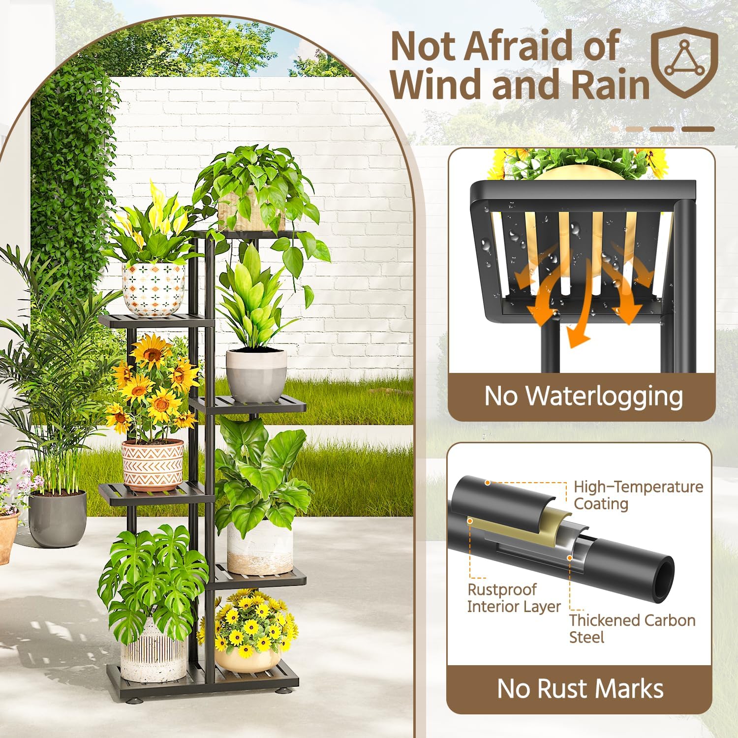 - 【Solid Feel You Can Trust】Worried about unstable stands tipping over? Crafted from upgraded metal that's 30% stronger than typical stands, the plant rack holds even heavy 9-inch pots with ease—no wobble, no tipping. From the moment you unbox it, you’ll feel the difference.
