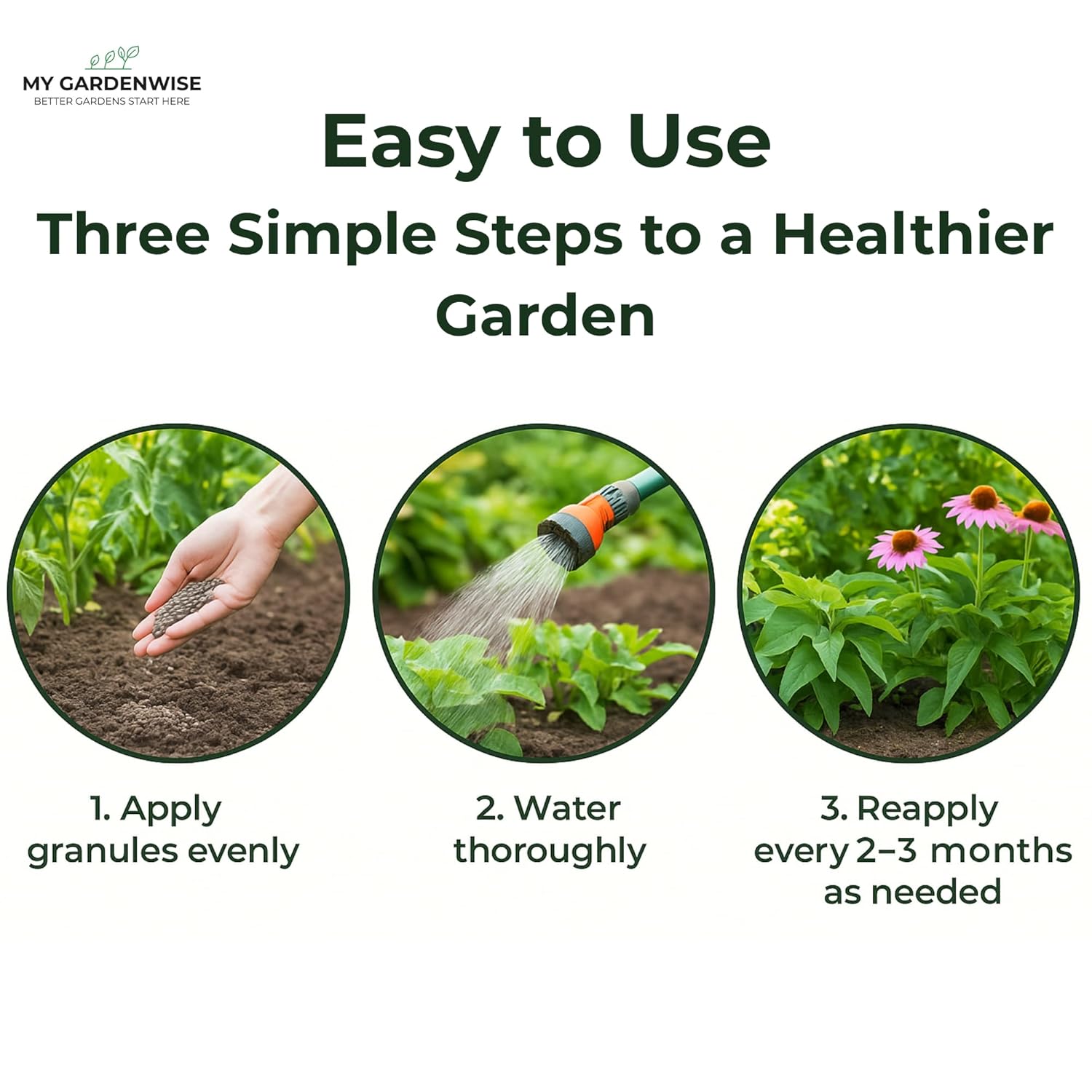 - Target Species : Lawns, Garden Vegetables, Tomatoes, Potatoes, Peppers, Eggplants, Fruit Trees, Ornamentals, Flowers