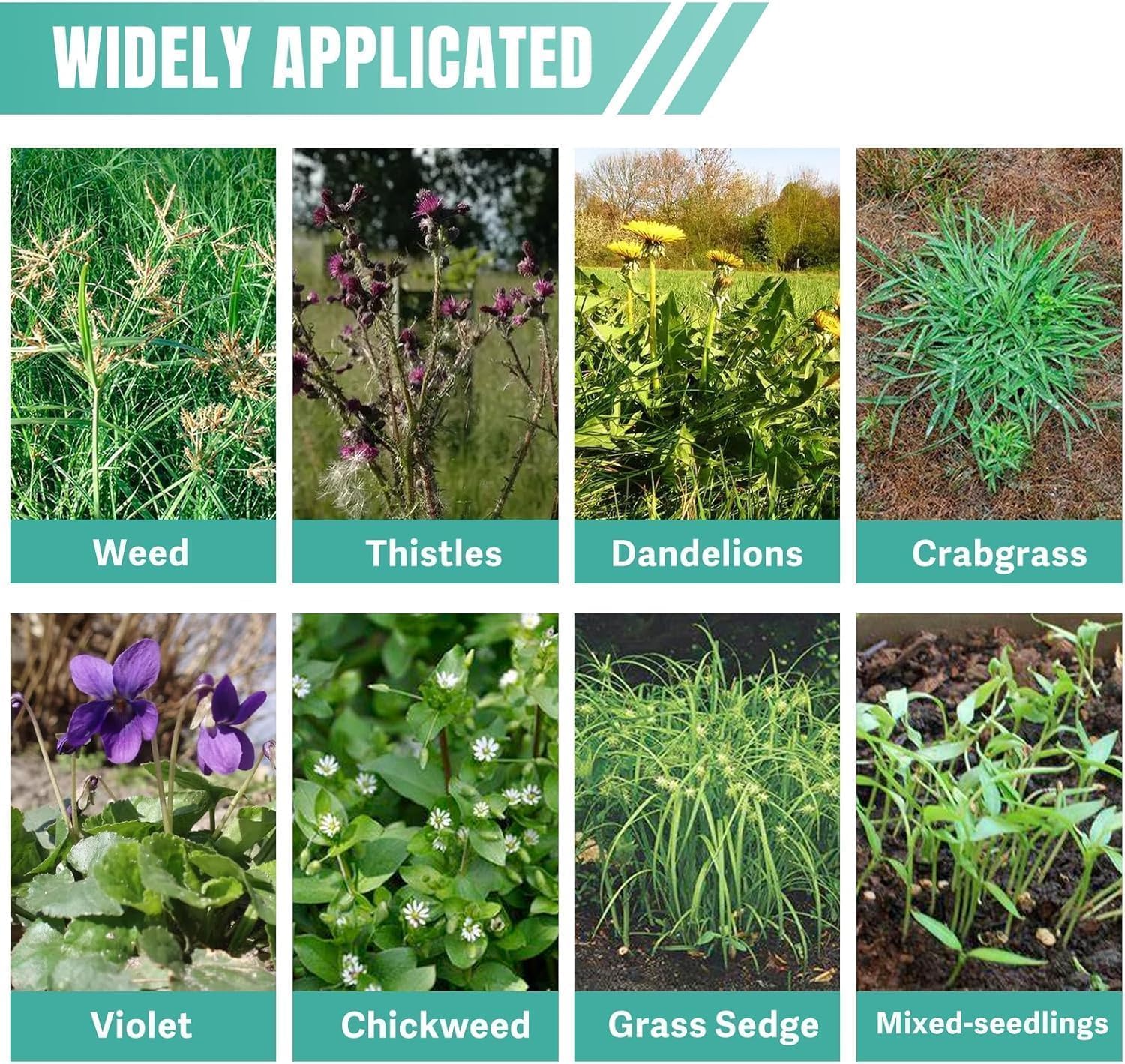 - 【Sturdy & Durable Weed Puller】This heavy-duty weed puller features a thick and a long design for durability. It includes a nylon foot pedal and four non-bending manganese steel claws with serrated edges, ensuring long-term use. It effectively removes weeds like crabgrass, dandelions, thistle, clover, ryegrass, and chicory.