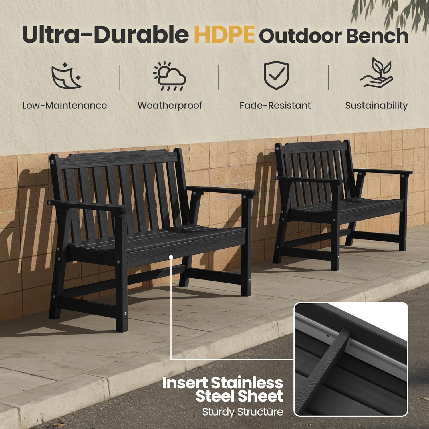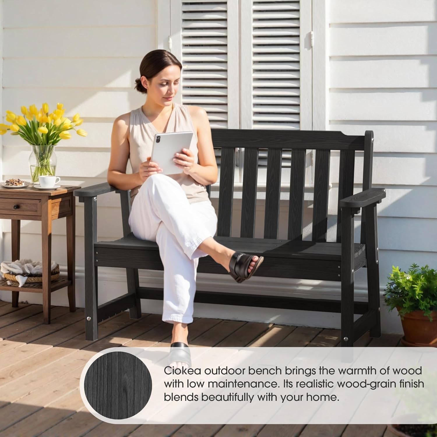 - 【All-Weather HDPE】: Ciokea outdoor bench is constructed from high-density polyethylene (HDPE), ensuring it withstands rain, UV rays, and temperature changes without cracking or rusting