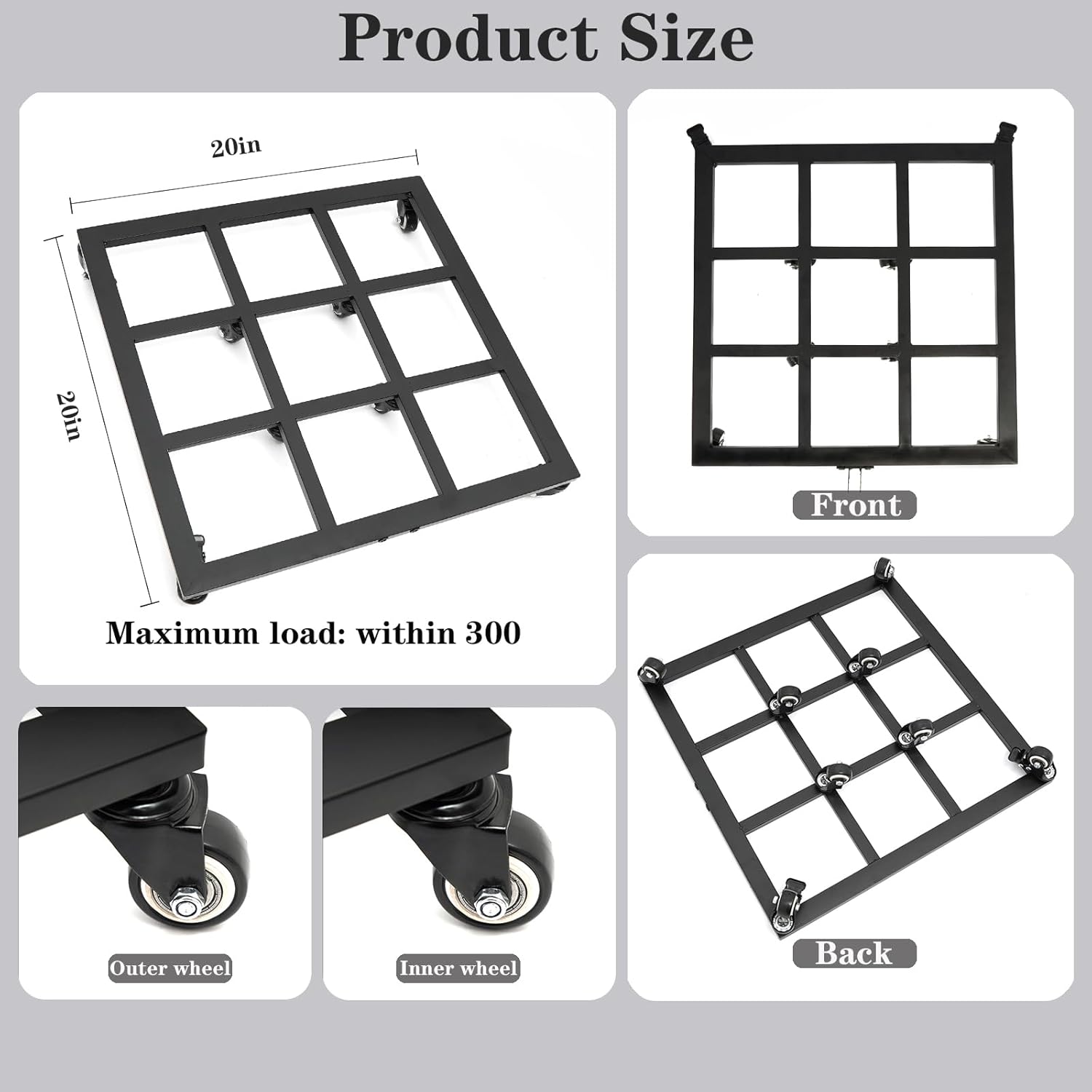 - đź’ŞExceptional Durability: Built to last, our plant dolly is crafted from high-quality steel, outperforming plastic, wood, and wire alternatives in both strength and resilience. With the capability to hold up to 200 lbs and equipped with eight robust wheels, it ensures smooth transportation indoors and outdoors without a hitch.