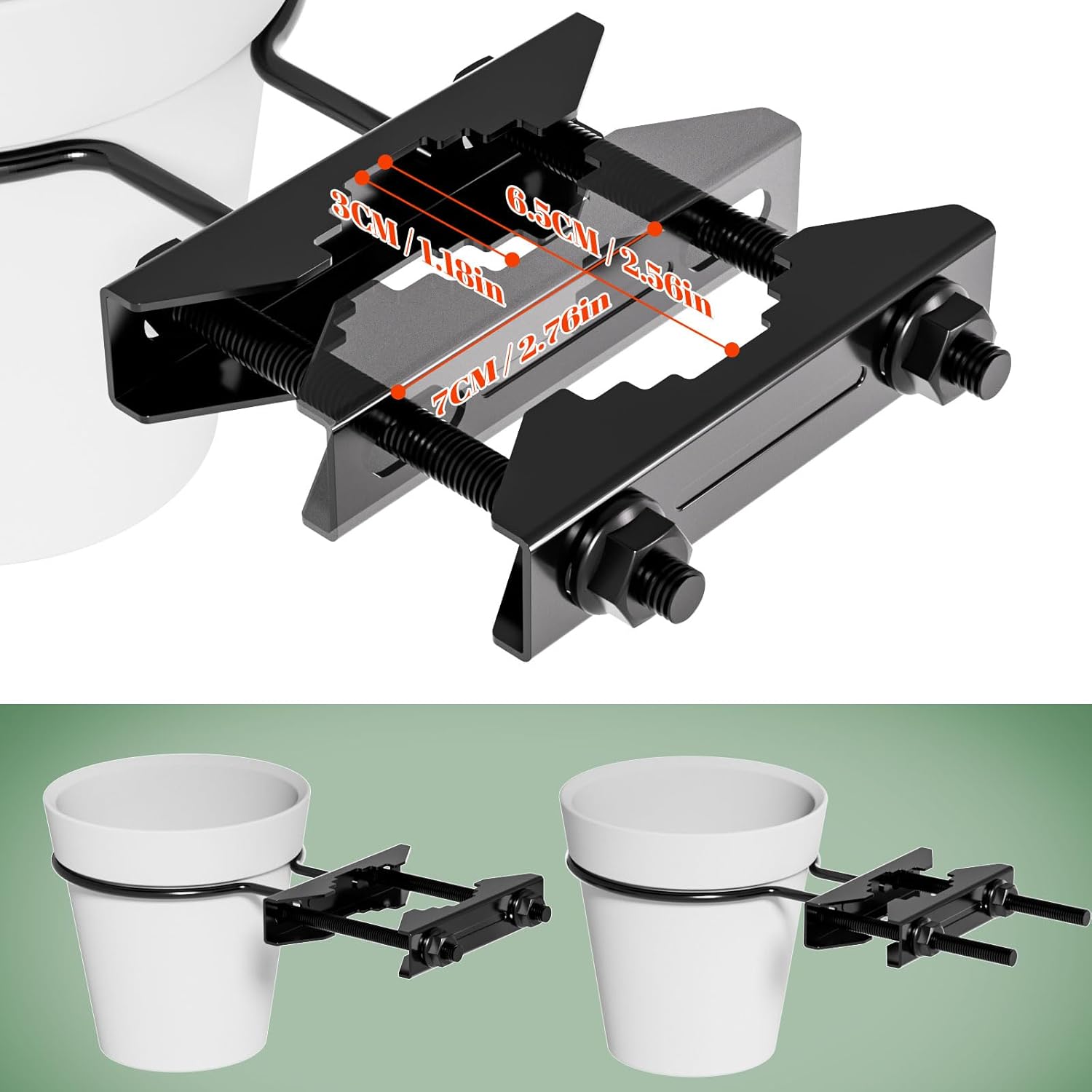 - Applicable to Various Railings: This railscapes plant holder between rails can be adjusted according to the width of the railing, don't worry about the spacing is not enough. The hanging planters for outdoor plants will not damage your railing and can be placed at either high or low positions on the railing