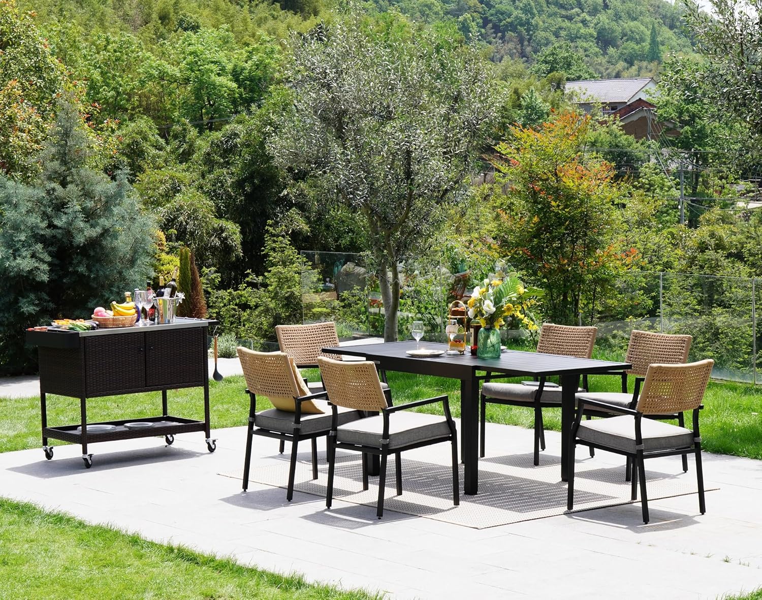 - Multi-Functional Bar Cart: The versatile design serves as an outdoor BBQ grill table, a food serving cart, a side table, or beverage bar, suitable for various leisure activities such as picnics, BBQs, and outdoor gatherings. It brings excellent convenience and compatibility indoors and outdoors