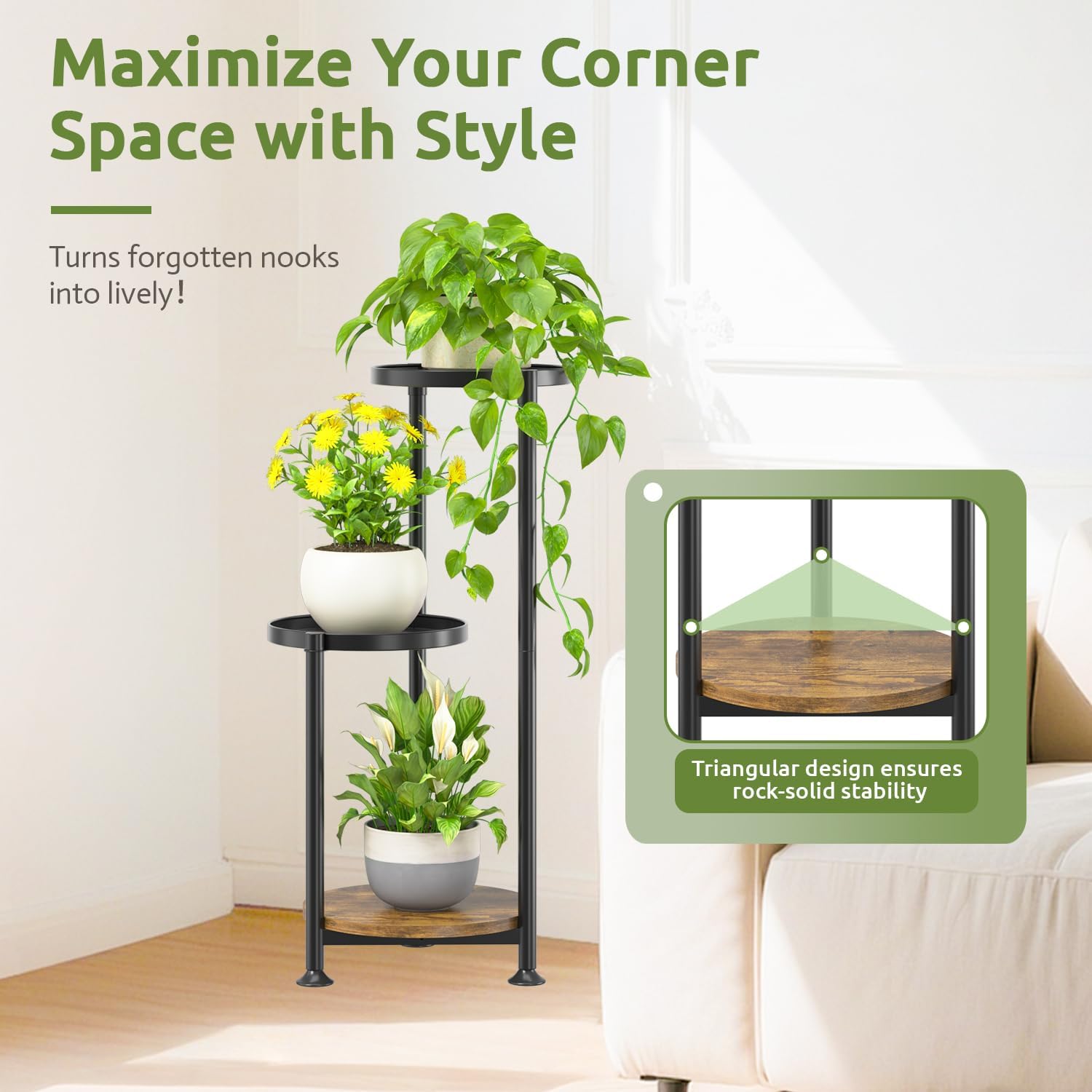 - [Built to Last, Rain or Shine] Crafted with a sturdy iron frame and a rust-proof, waterproof finish, this large plant holders is built to withstand extreme weather, indoor or outdoor. The triangular design ensures rock-solid stability, while the widened iron trays support up to 60 lbs and thickened wood boards hold an impressive 100 lbs—perfect for your heaviest plants!