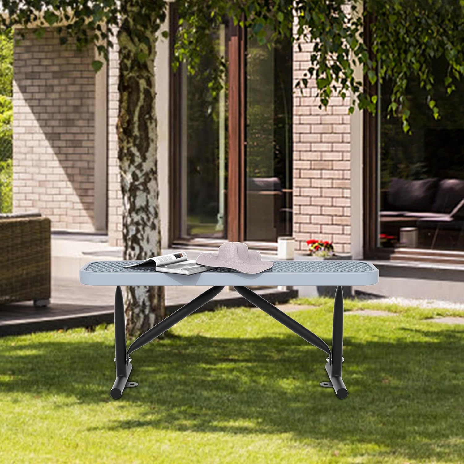 4 Feet Heavy Duty Metal Park Bench for Outside, Outdoor Bench with Portable Frame, Commercial Benches for Shopping Mall, Store, Park, Patio, Deck, Grey