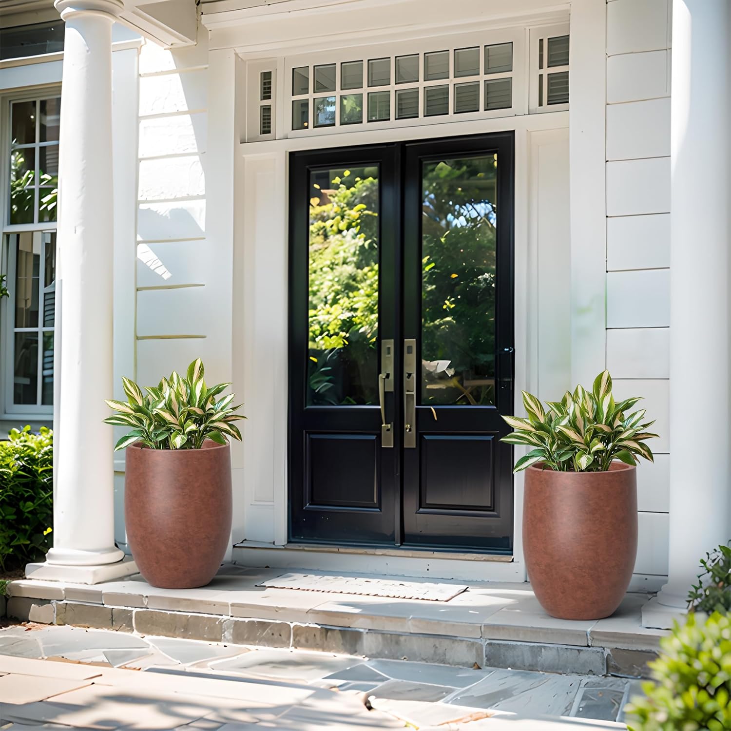 Kante 21.7 Inch Tall Concrete Planter, Large Indoor Outdoor Plant Pot with Drainage, Smooth Rusty Finish with Warm Brown Interior, Ideal for Porch, Home, Garden, Patio