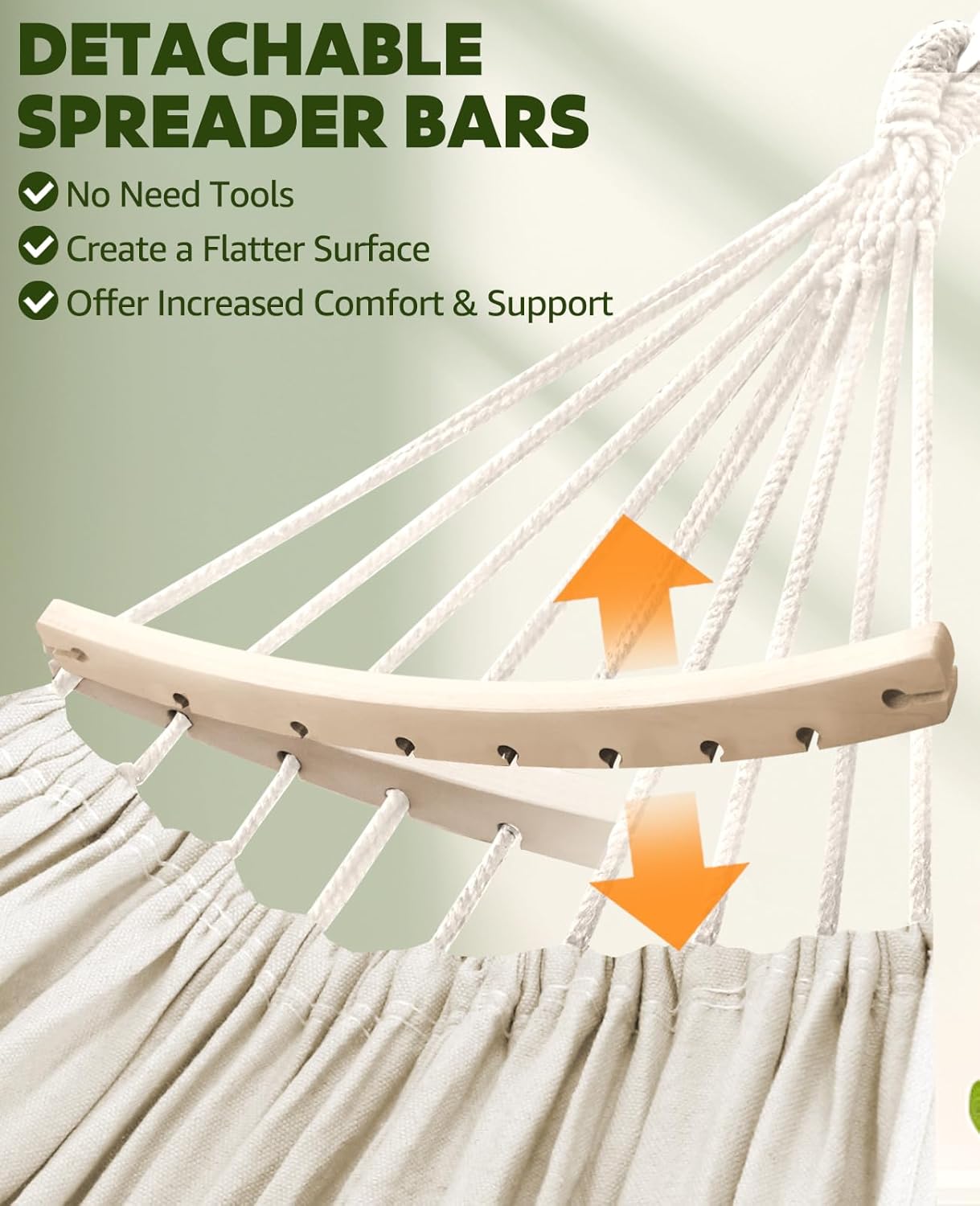 Chihee Cotton Hammock Large Soft Breathable Camping Hammock Holds Up to 660lbs Portable Tree Hammock with Detachable Spreader Bar Pillow 2 Strong Webbings 2 Carabiners Patio Garden Indoor Outdoor
