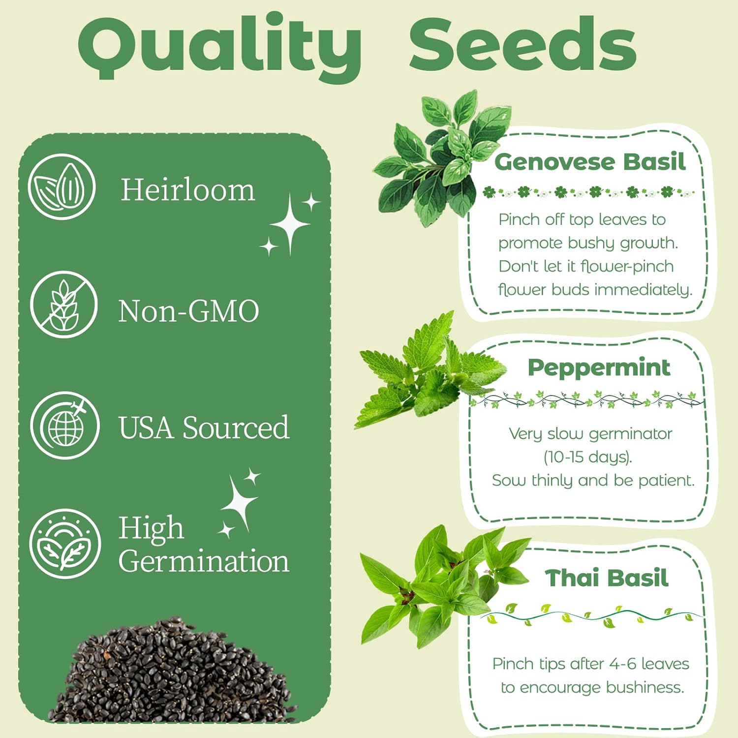 - Grow 3 Popular Herbs at Home: Includes over 1800+ seeds of Genovese Basil, Peppermint, and Thai Basil - ideal for fresh cooking, herbal tea, or aromatherapy
