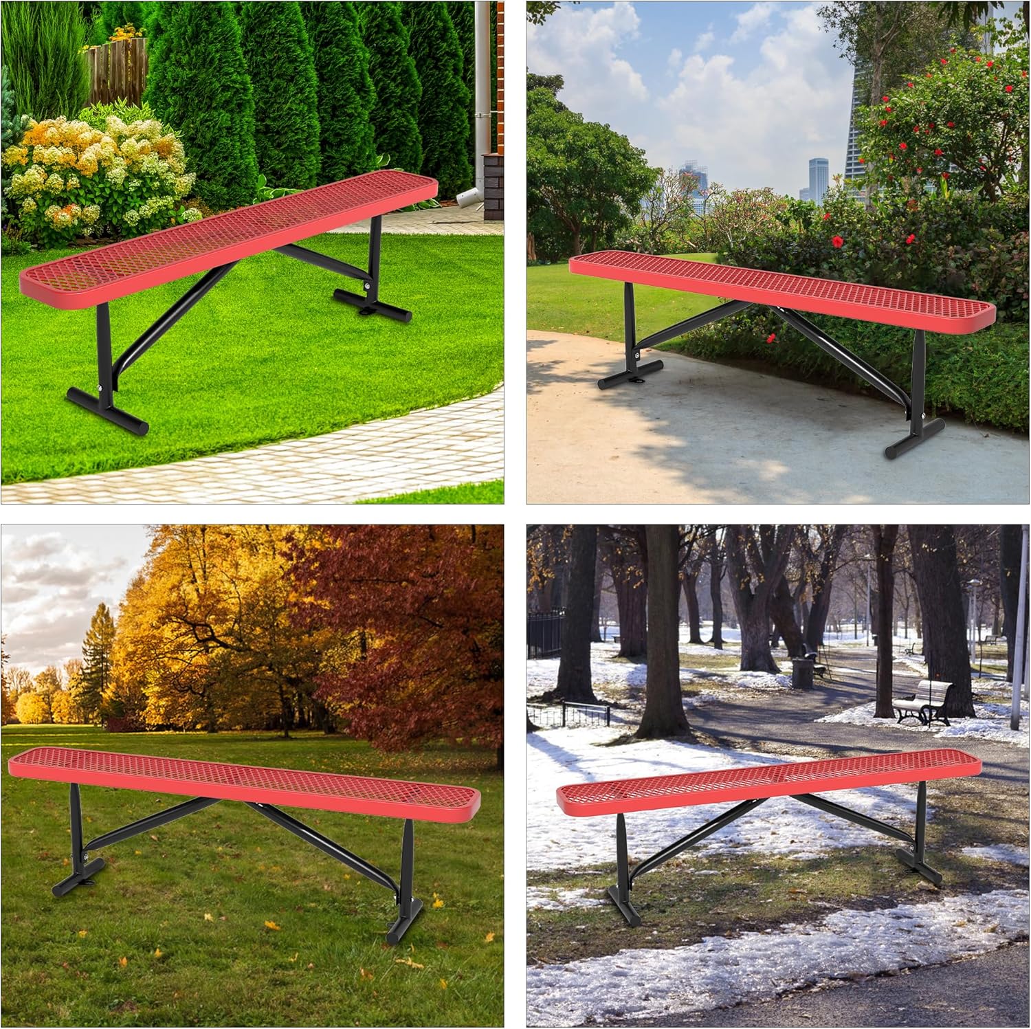 48" L Outdoor Steel Flat Bench, Heavy Duty Metal Park Bench for Outside, Expanded Metal, Commercial Benches Mesh Bench for Shopping Mall, Store, Lawn, Park, Patio, Deck, Garden (Red, 6FT)