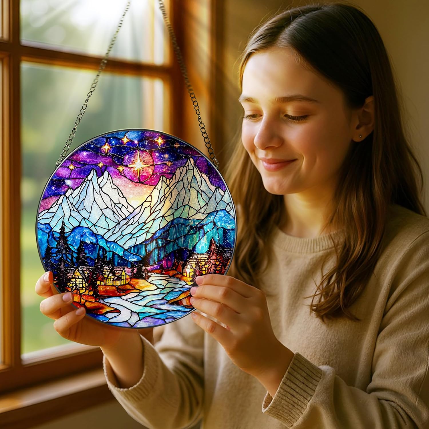 Stained Glass Window Hanging, Pauyadu 8 Inch Night Court Sun Catcher, Stained Glass Suncatcher Ornament, Suncatchers for Windows Hanging, Starlight Lover Gift, Gifts for Women, Friend, Lover
