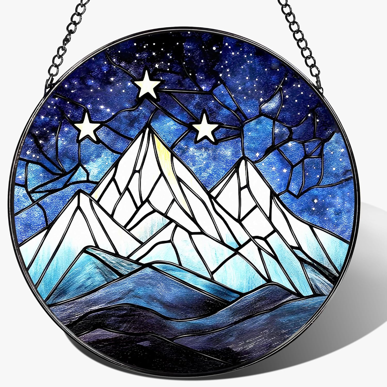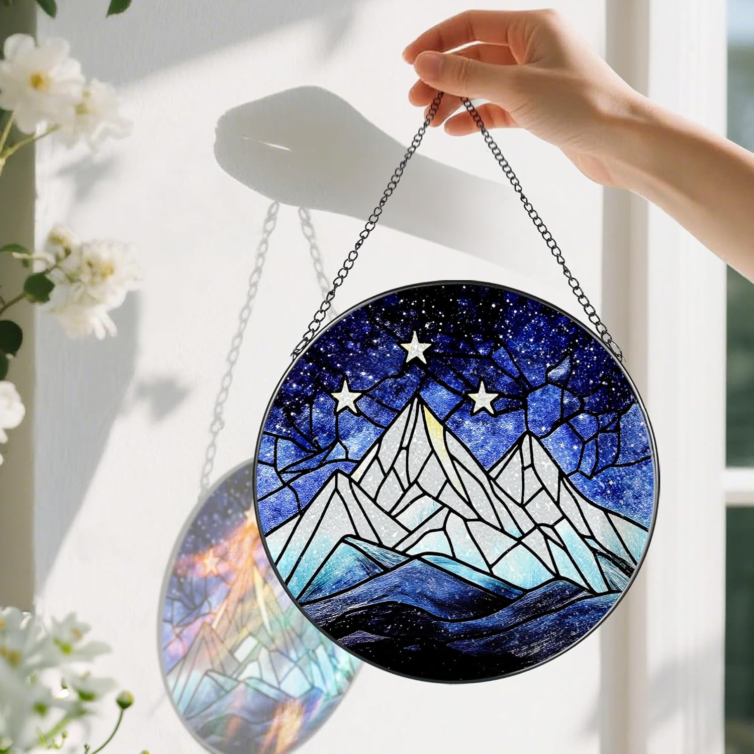 Stained Glass Window Hanging, Pauyadu 8 Inch Stained Glass Suncatcher Ornament, Night Court Window Decor, Suncatchers for Windows Hanging, Nature Lovers Gifts, Gifts for Friend, Lover