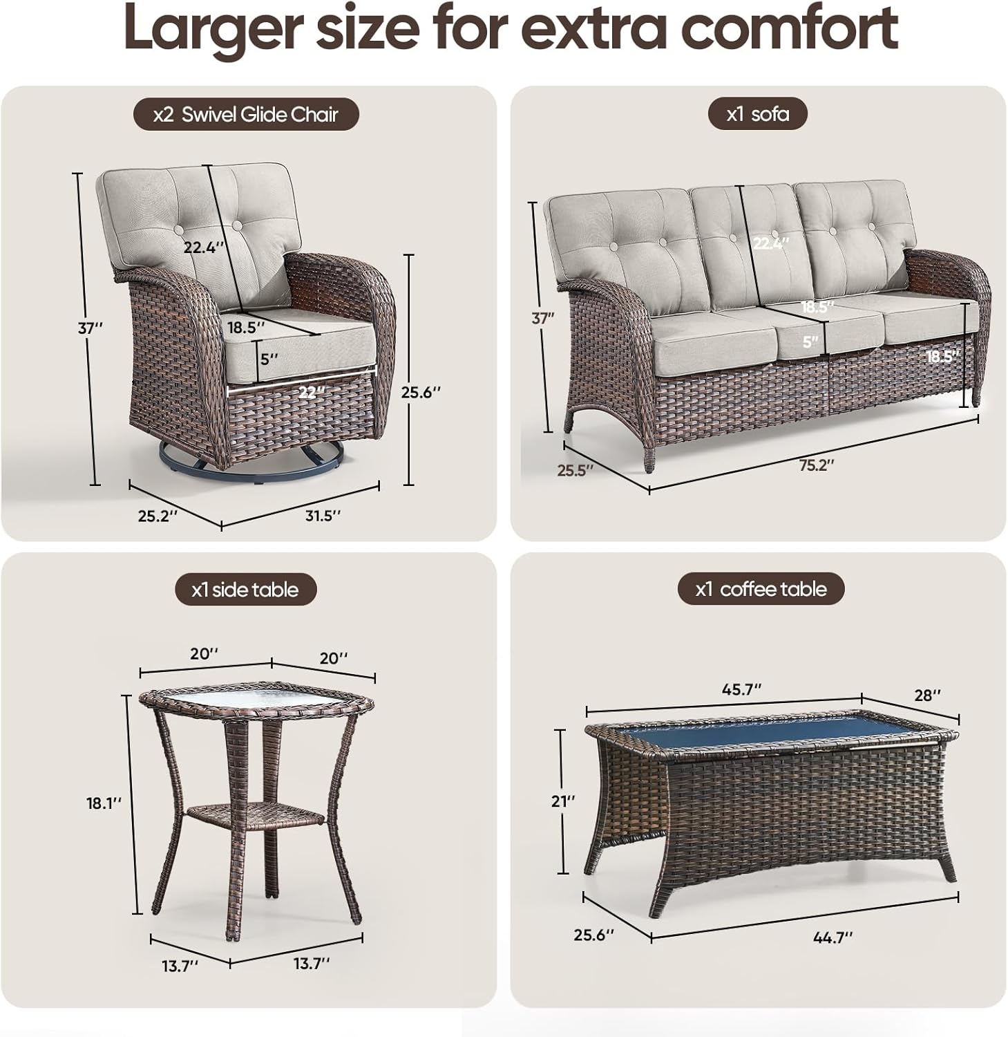 - Color : Brown Rattan | Beige Cushions