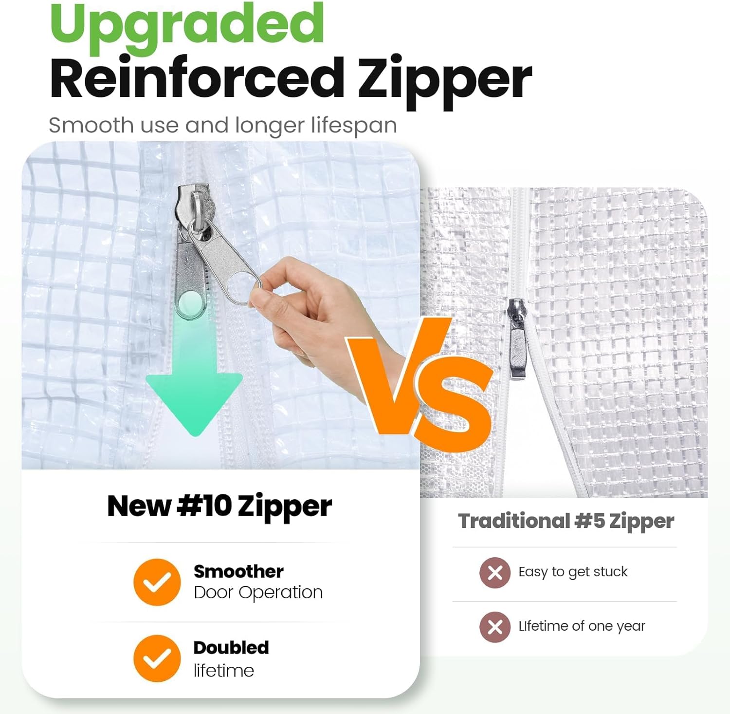 - [Temperature & Humidity Management]--Featuring 6 roll-up screen windows plus 2 door-netting, it facilitates temperature and humidity control. It increases temperature promoting early spring plant growth, enhances ventilation on hot summer days, and retains warmth during the winter. It keeps plants from pouring rain, winds, and snow.