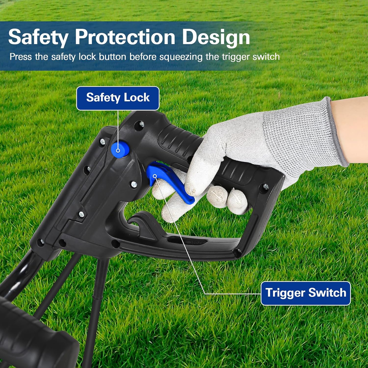 - Fold-Flat Handles: Tool-free, quick-lock knobs and an ergonomic H-handle let the garden tiller fold flat for compact storage and hassle-free transport.