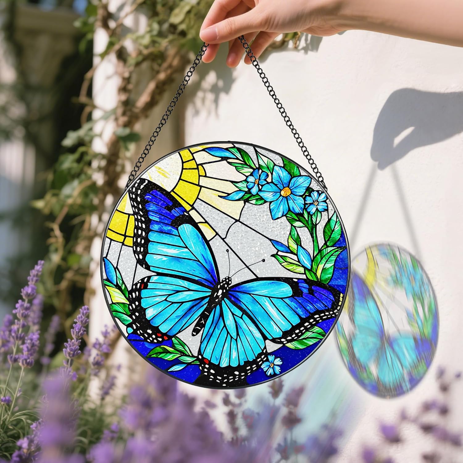 Stained Glass Window Hanging, 8 Inch Sun Catchers Indoor Window, Butterfly Suncatchers for Windows Doors Home Decoration and Christmas, Festival, Housewarming, Mother's Day, Birthday, Gift for Women