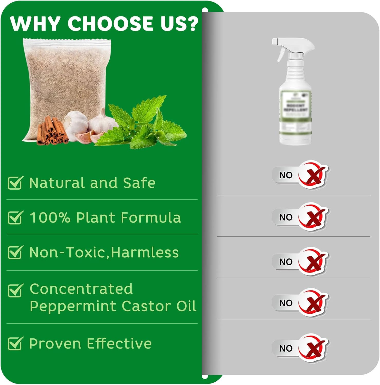 - 【Easy to Use】Simply remove the sealed plastic packaging, place the peppermint oil for mice into the included mesh bag, and place it in areas where rodents are often found, such as kitchen corners, car engines, barns, etc. The unpleasant smell will keep rodents away