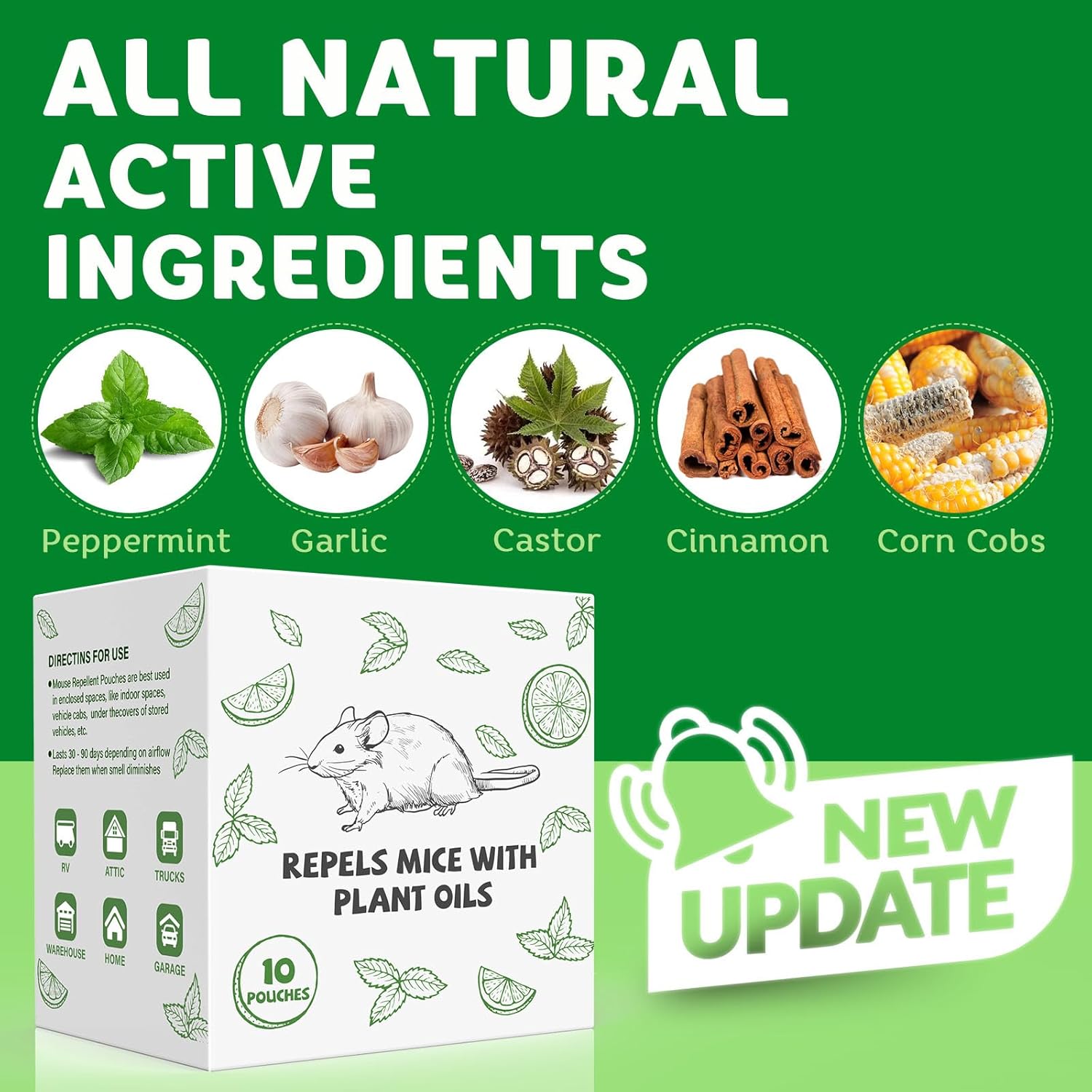 Pest Repellent Pouches, 10 Pack Peppermint Oil Repellent for Mouse, Roach, Rodent, Spider, Ant, Mice, Rats, Pest Control Indoor & Outdoor, Natural Mouse Deterrent Replace Traps Family & Pet Safe