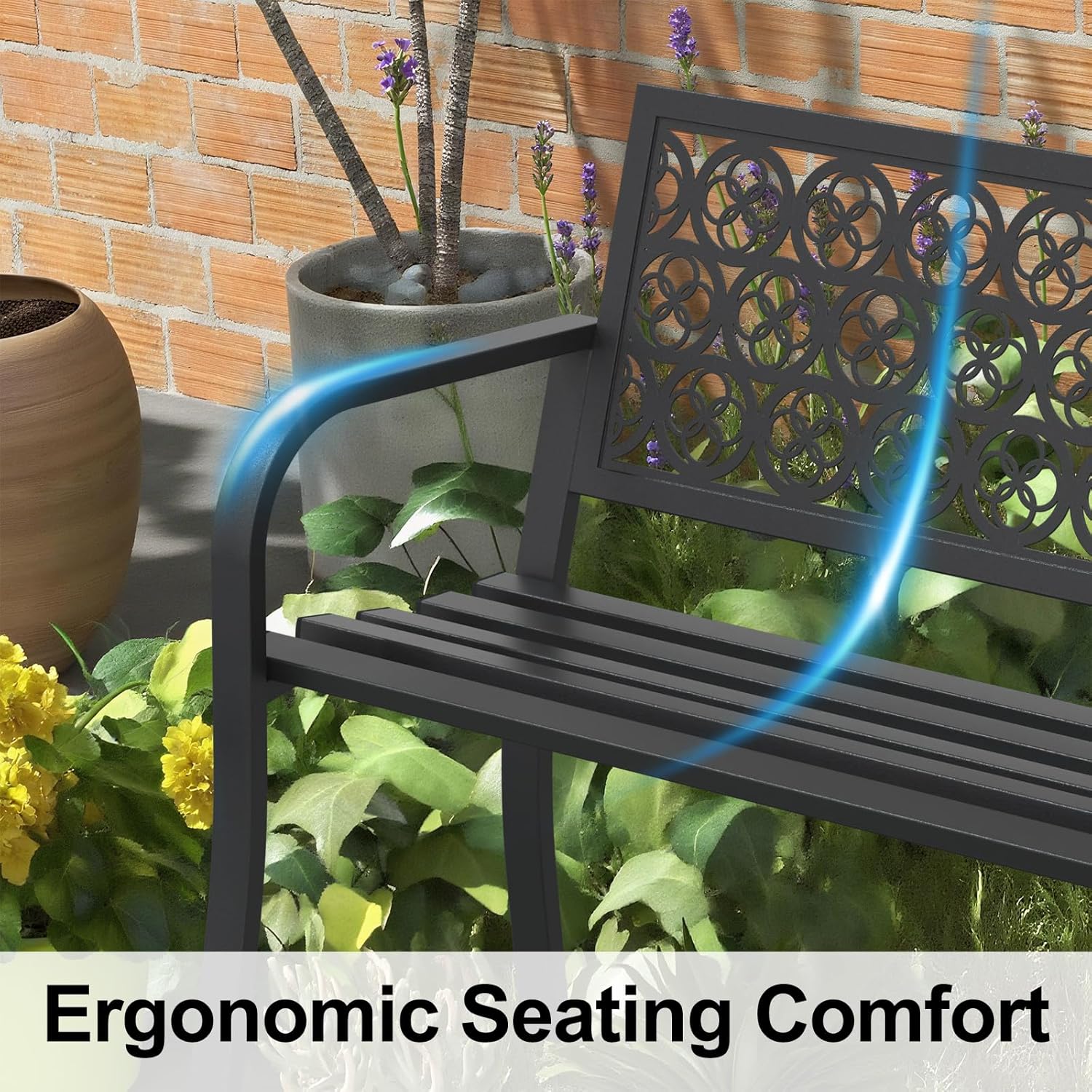 - 【Sturdy & Durable Build】Crafted from heavy-duty steel with a reinforced frame, the outdoor metal bench is perfect as a garden bench, patio bench, or front porch bench. Designed for stability and strength, it offers safe seating year after year. Ideal for families wanting a metal outdoor bench that’s both stylish and dependable for any yard, porch, or lawn.