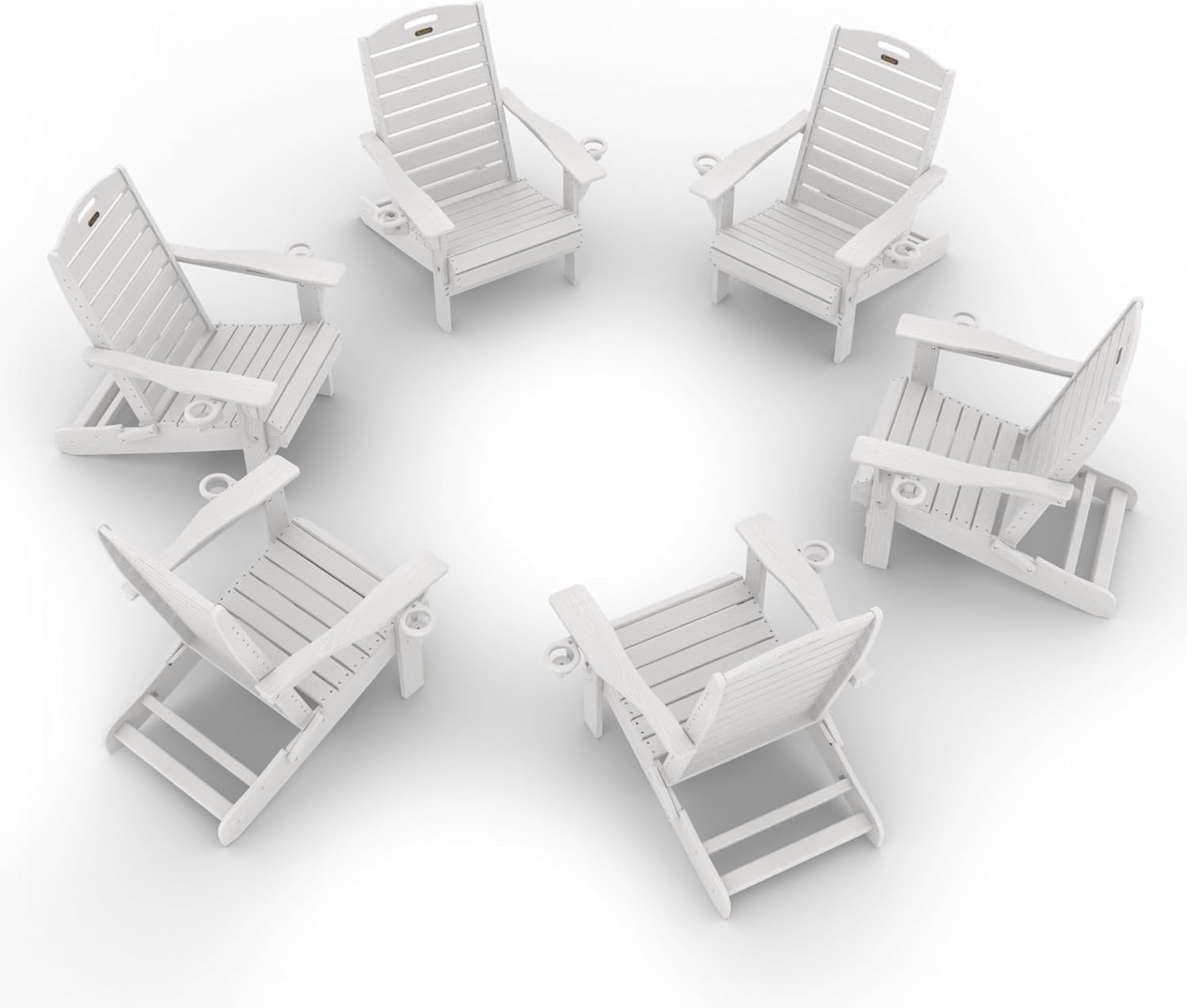 Adirondack Chairs Set of 6, Outdoor Fire Pit Chairs, HDPE All-Weather Adirondack Chairs with Cup Holder, Lawn Chair for Deck, Patio, Garden (White)