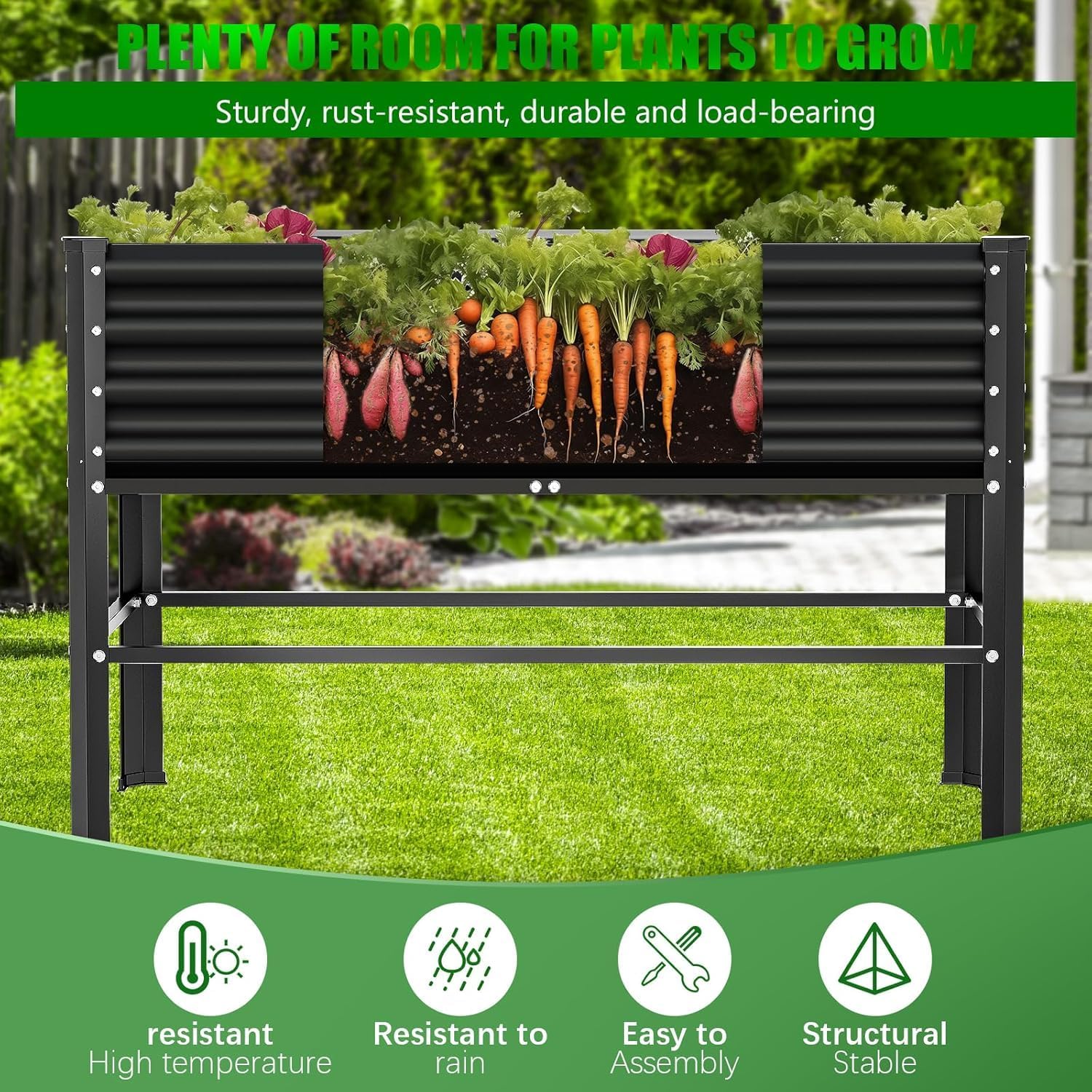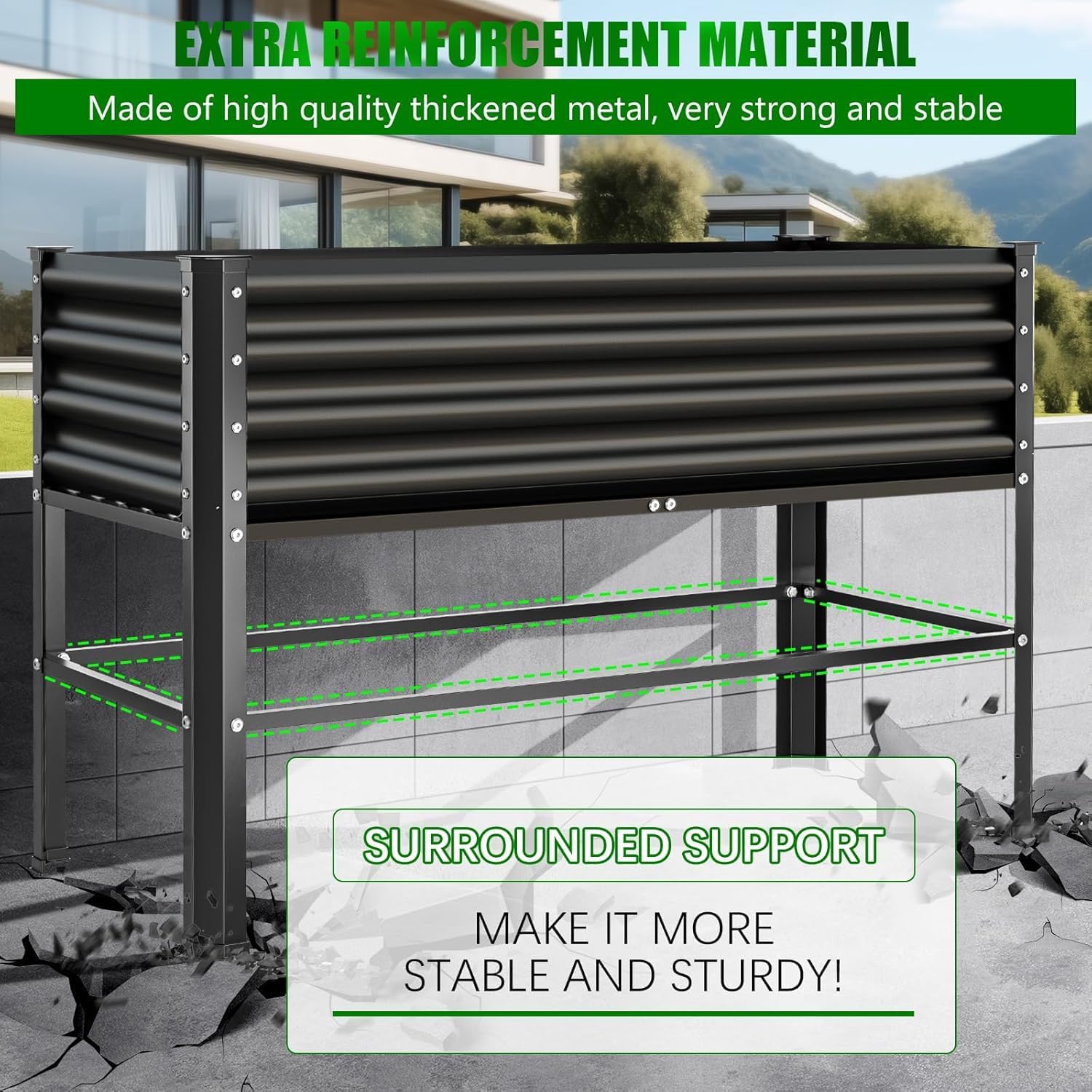 - 【Distinctive Design】-Outdoor elevated garden beds, our custom design style features galvanized sheet metal on the top, a stainless steel frame on the middle base, and the lower four corners are made of heavy-duty steel with a black powder-coated finish,This combination exceeds the lifespan of wooden products and ensures excellent rust resistance to keep the garden bed in the best condition for a long time.