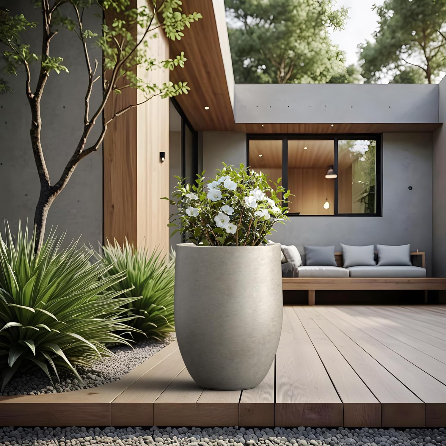 Kante 21.7" H Stone Gray Concrete Tall Planter, Large Decorative Garden Pot with Drainage Hole and Rubber Plug for Outdoor Indoor Plants, Modern Round Style for Home and Garden