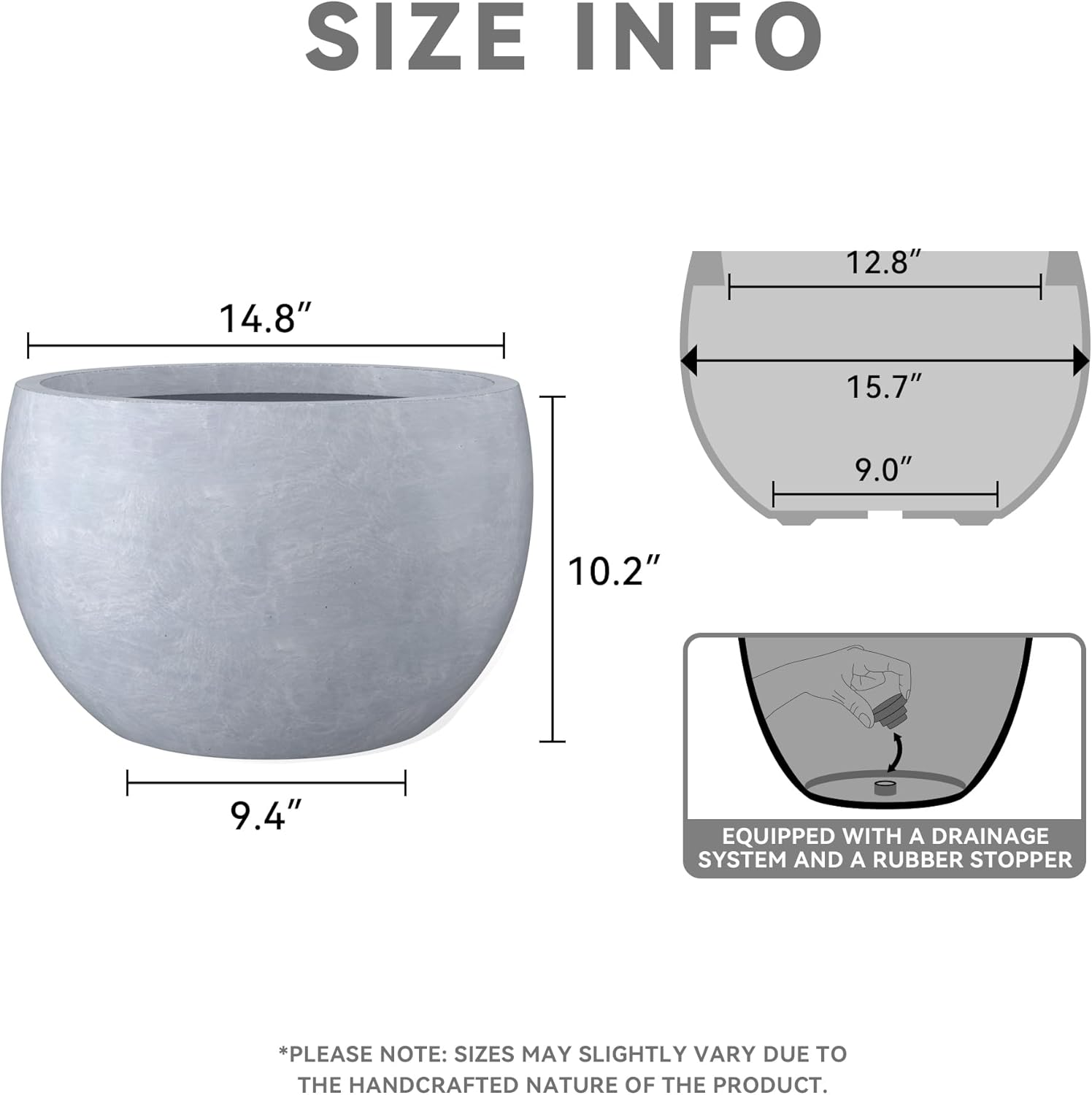 Kante 15.7" Dia Round Concrete Planter, Outdoor/Indoor Large Bowl Plant Pots with Drainage Hole and Rubber Plug for Garden Patio Balcony Home, Slate Gray
