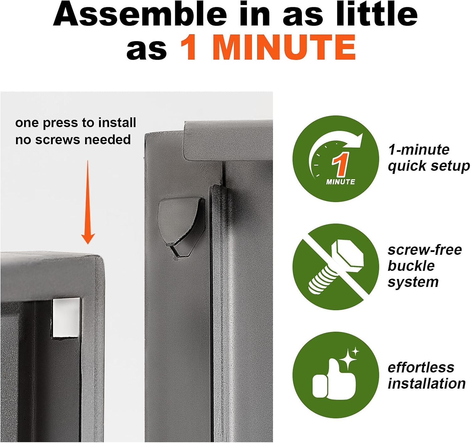 - 1 Minute No-Screw Assembly: Effortlessly assemble in as little as 1 minute with durable buckles—no tools or screws required. Simplified design for instant indoor/outdoor styling