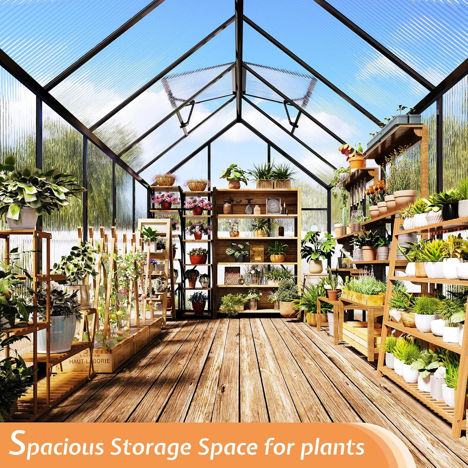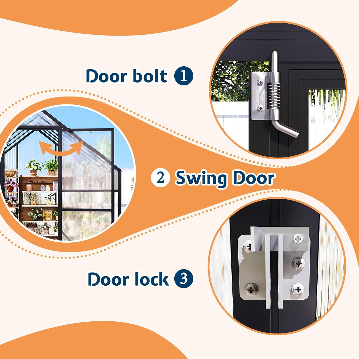 - Polycarbonate Panels: Garden greenhouse is crafted with 4mm semi-transparent panels that block 99.99% of harmful UV rays, providing excellent insulation for your plants.