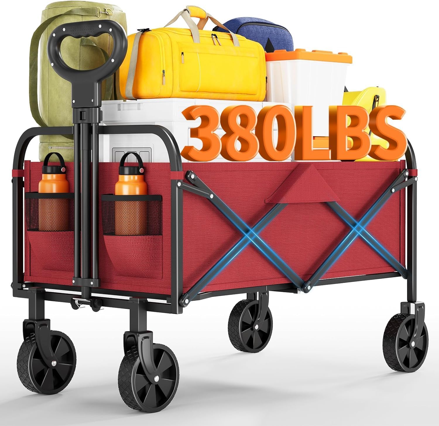 - Heavy-Duty 380LBS Load Capacity & Spacious 220L Storage:Engineered with a reinforced heavy-duty steel frame and tear-resistant 600D Oxford fabric, this wagon cart effortlessly handles up to 380 lbs of gear. The 220L (6.2 cubic feet) cavernous space is large enough for all your groceries, camping equipment, beach essentials, or gardening supplies, making it the perfect heavy-duty foldable wagon for any task.